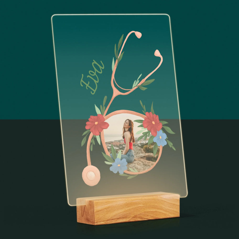 Fotka A Textem: Stetoskop Květiny - Tisk na akrylovém skle