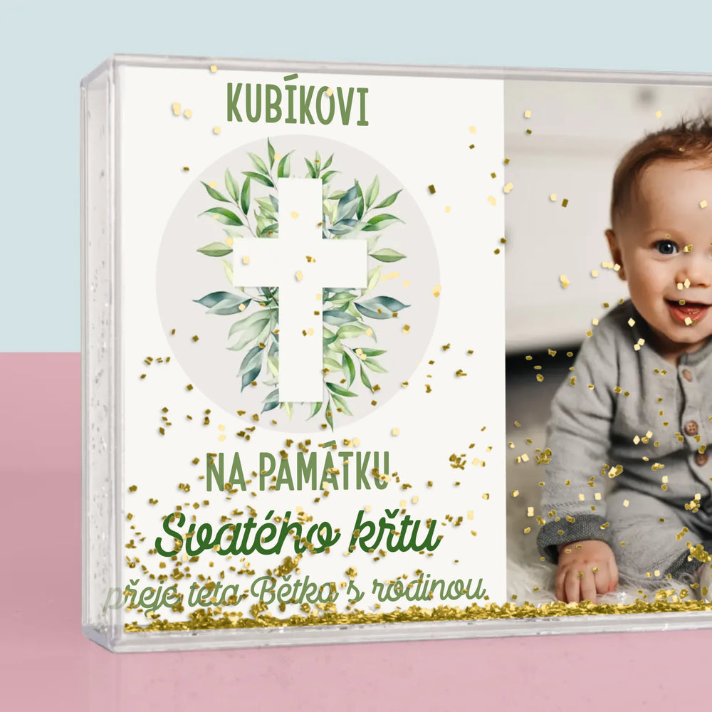 Fotka A Textem: Svatý Křest Lístky - Sněžící fotorámeček