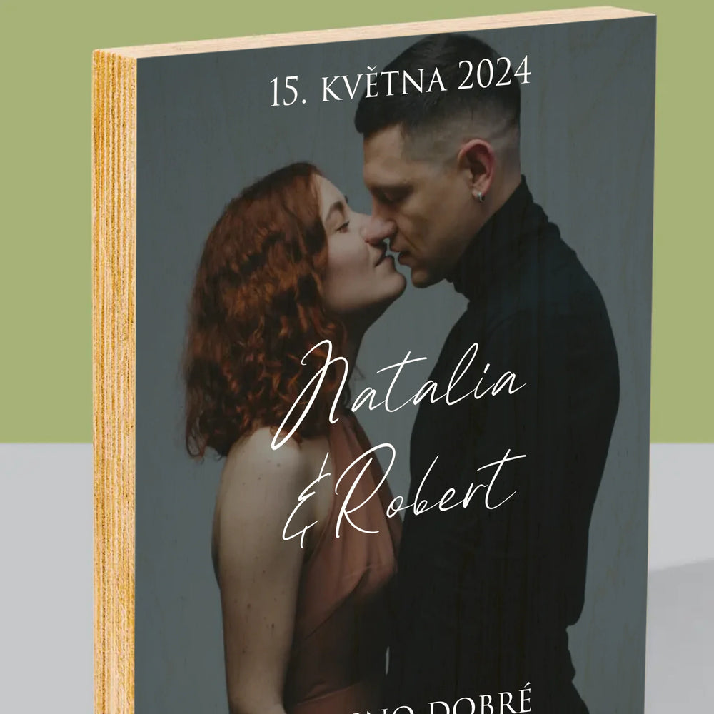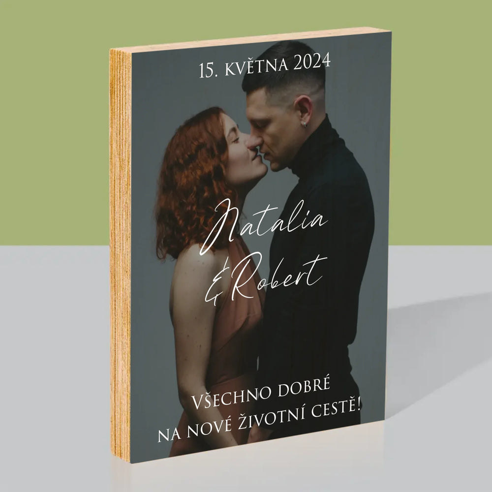 Fotka A Textem: Svatební Fotka Přání - Tisk na dřevo - vertikální