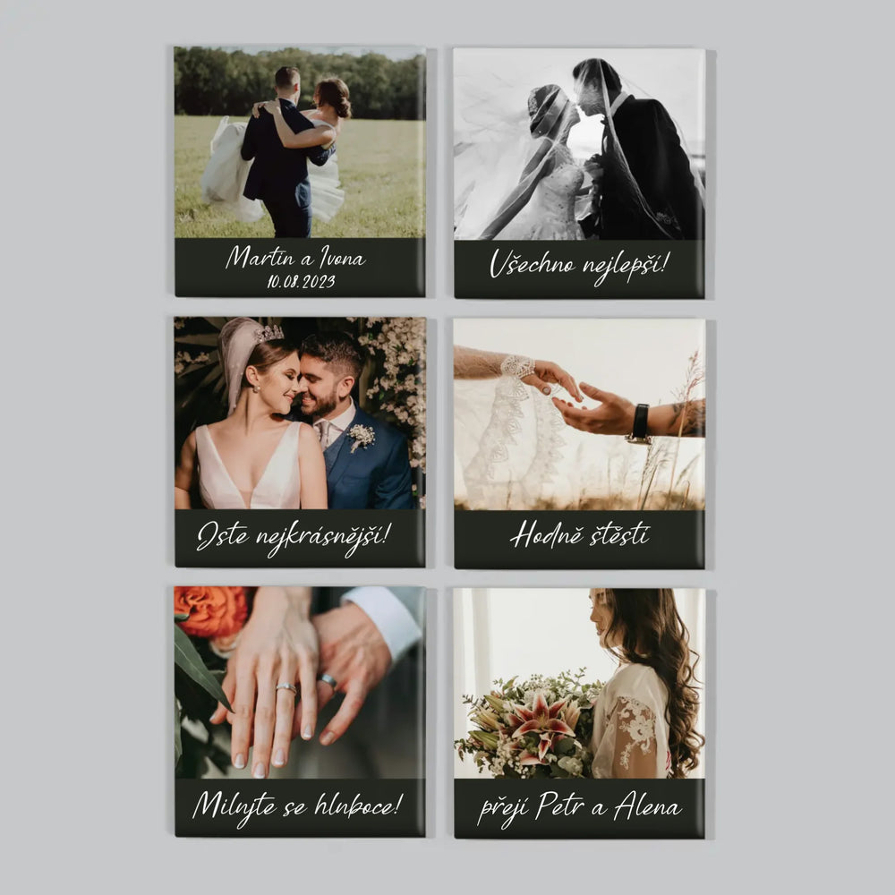 Fotka S Textem: Svatební Fotografie - Sada Magnetů