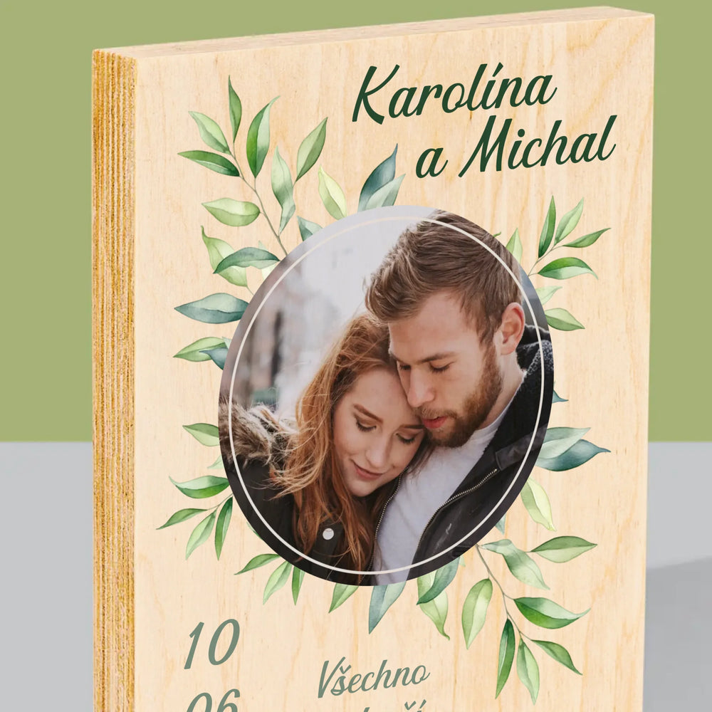Fotka A Textem: Svatební Lístky - Tisk na dřevo - vertikální