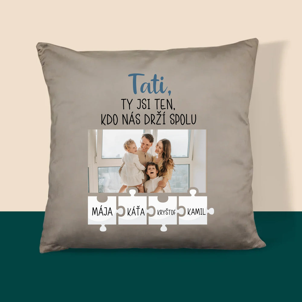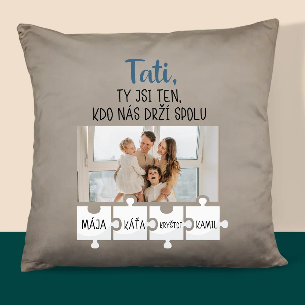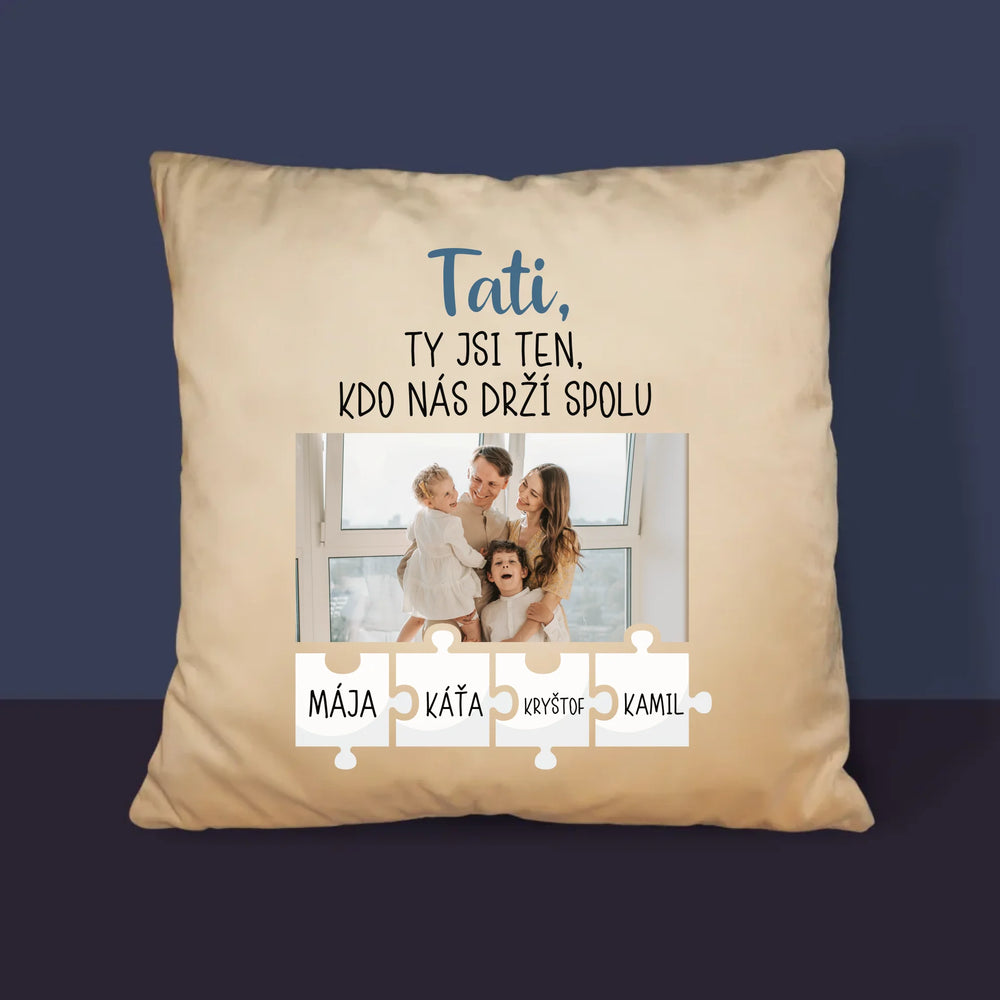 Fotka A Textem: Tati, Ty Jsi Ten, Kdo Nás Drží Spolu - Polštář