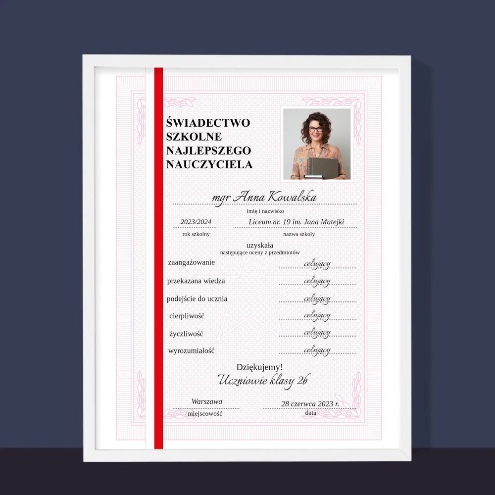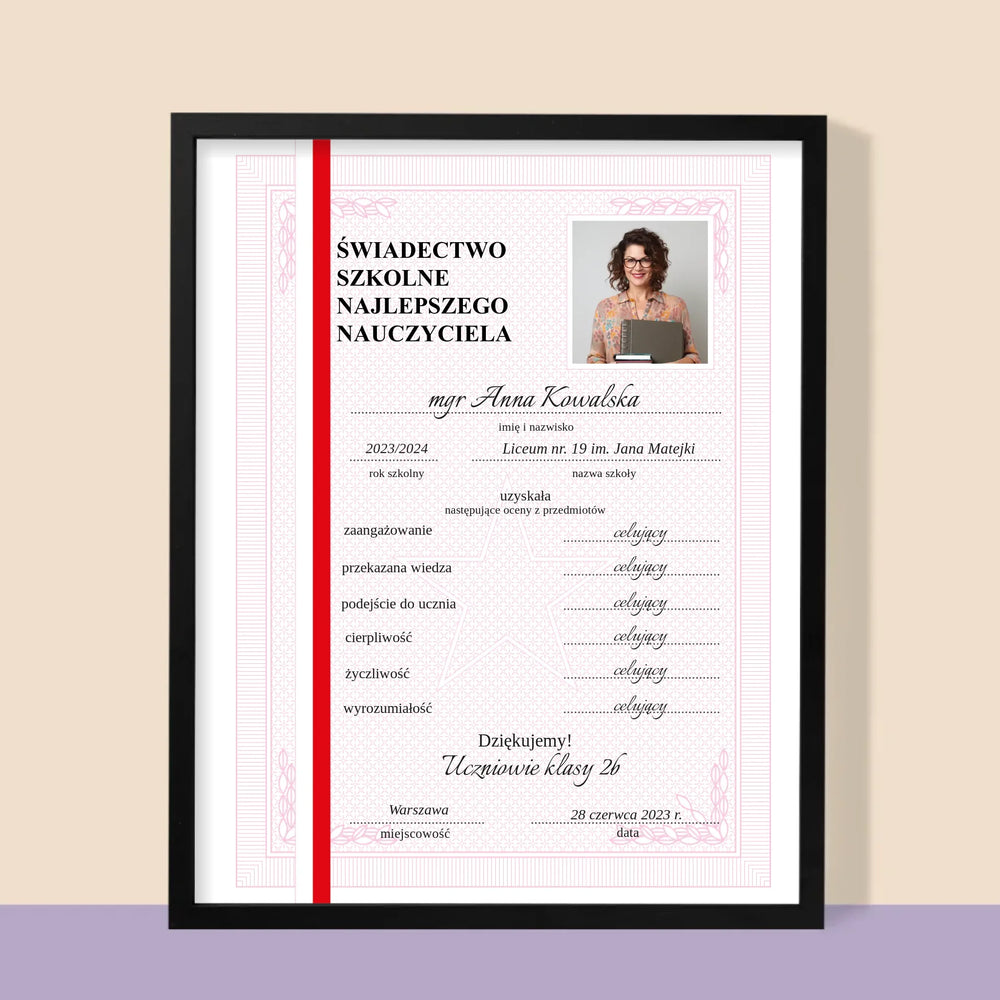 Fotka A Textem: Vysvědčení Nejlepšího Učitele - Tisk v rámečku