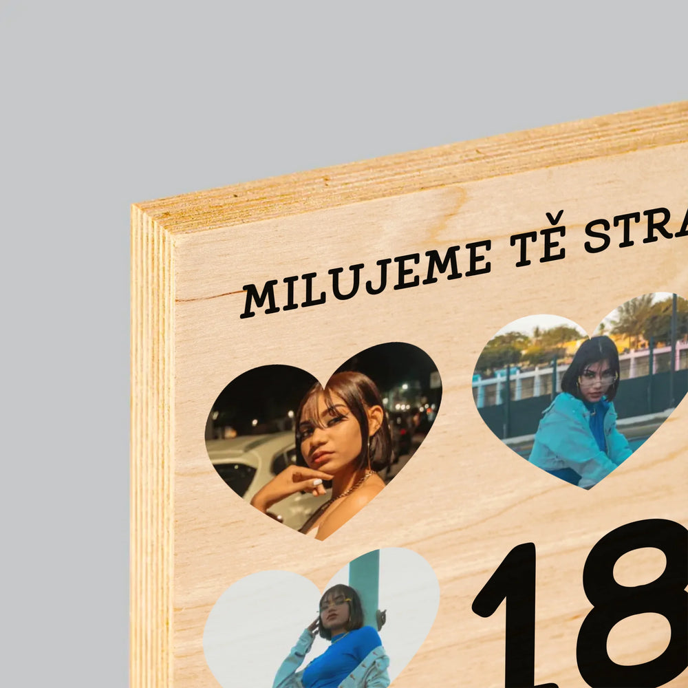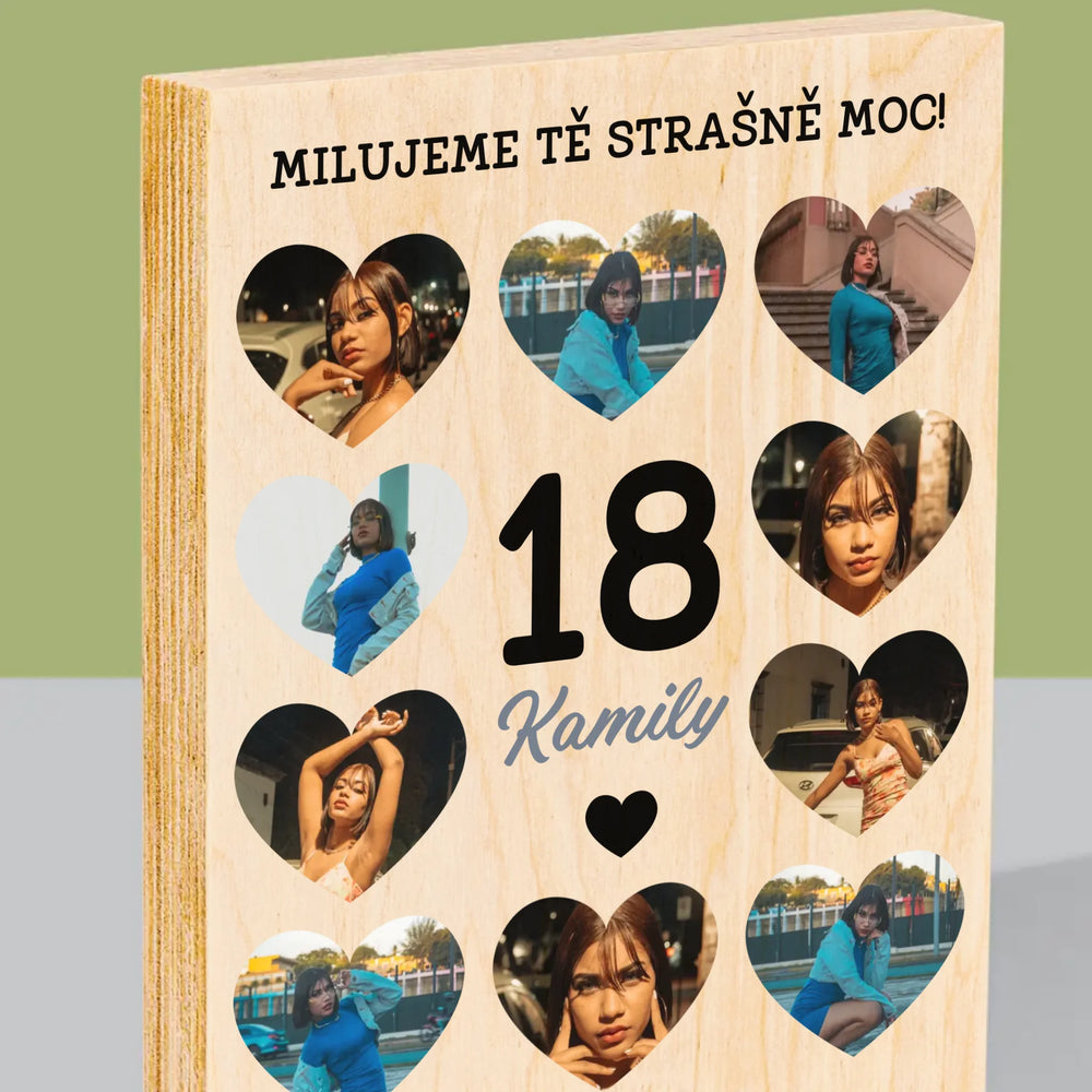 Fotokoláž: 18 Srdce - Tisk na dřevo - vertikální