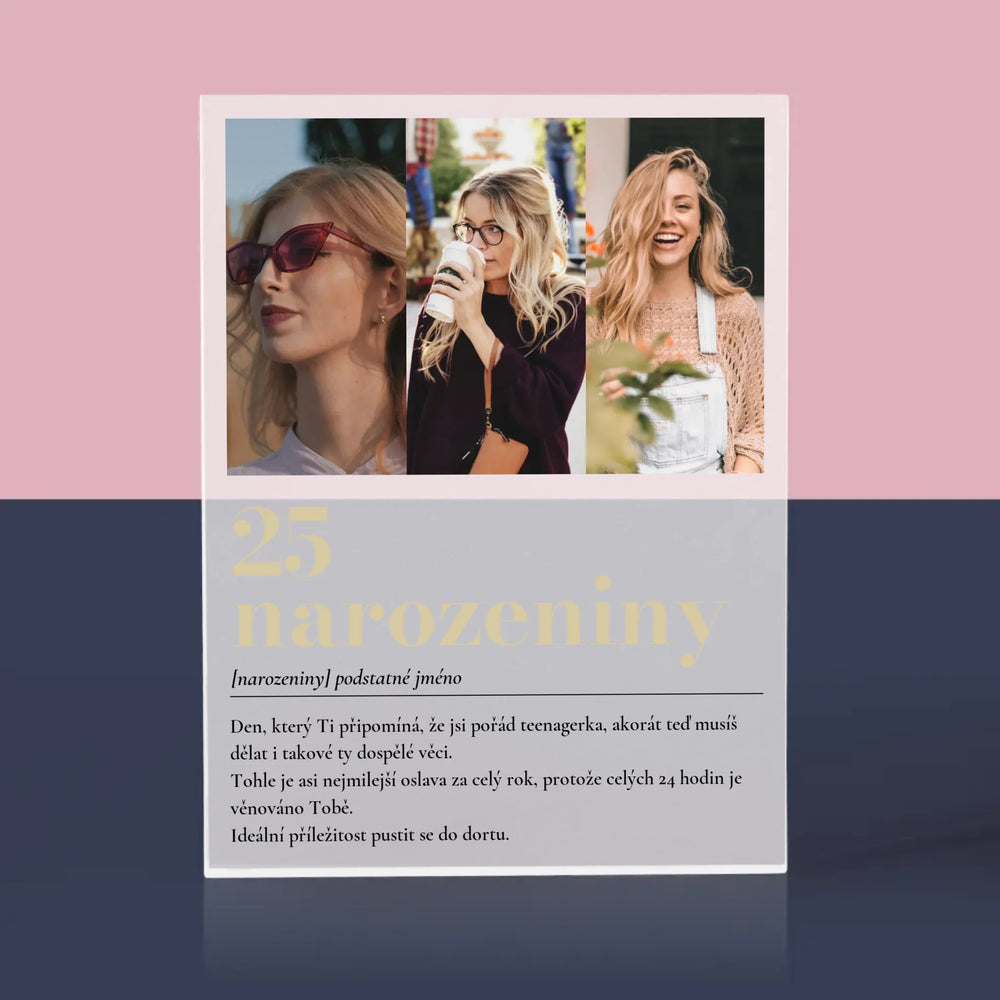 Fotokoláž: 25. Narozeniny Definice - Akrylový blok - vertikální