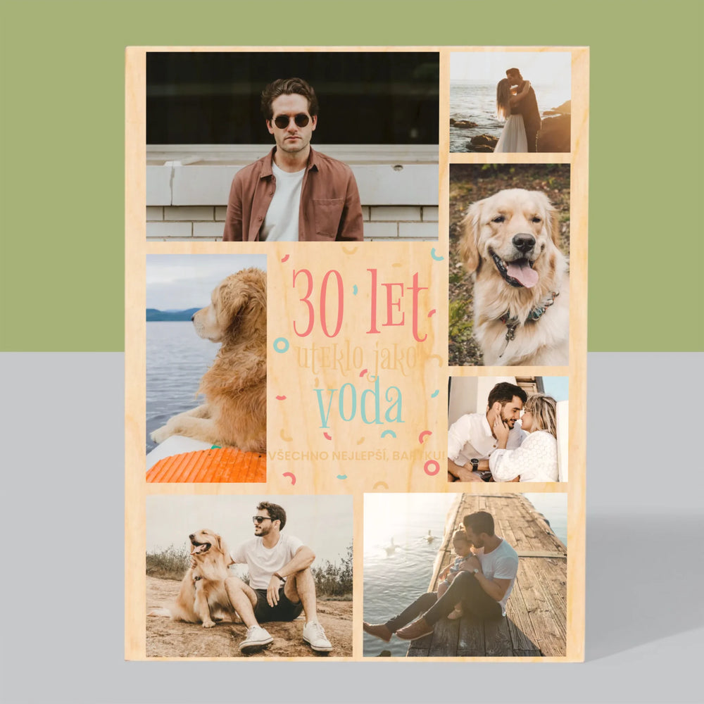 Fotokoláž: 30 Let Uteklo - Tisk na dřevo - vertikální