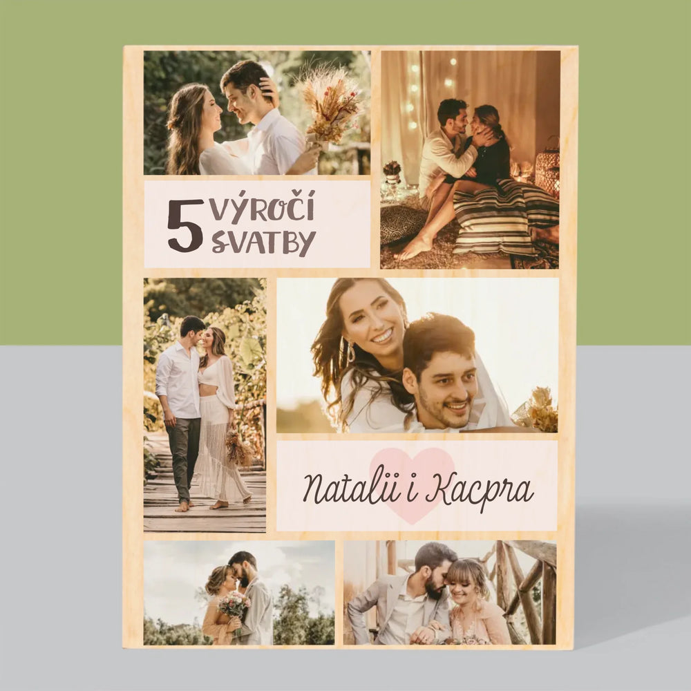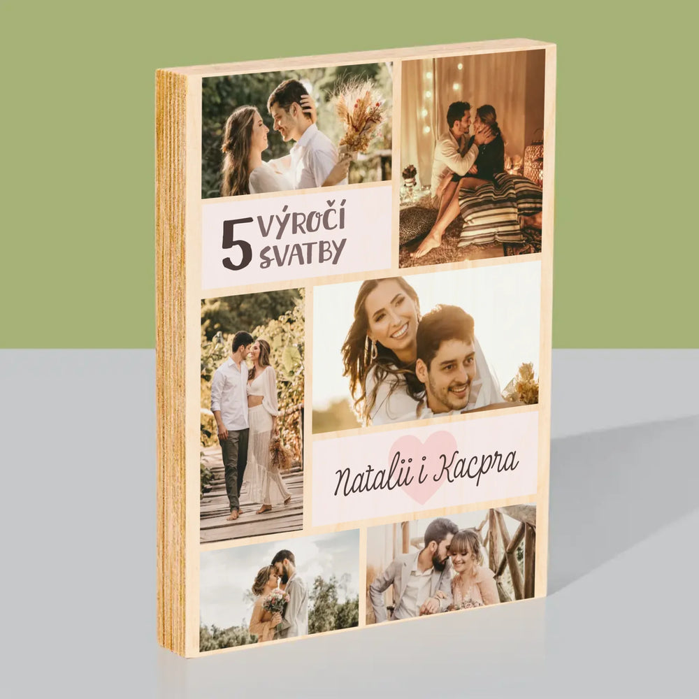 Fotokoláž: 5. Výročí - Tisk na dřevo - vertikální