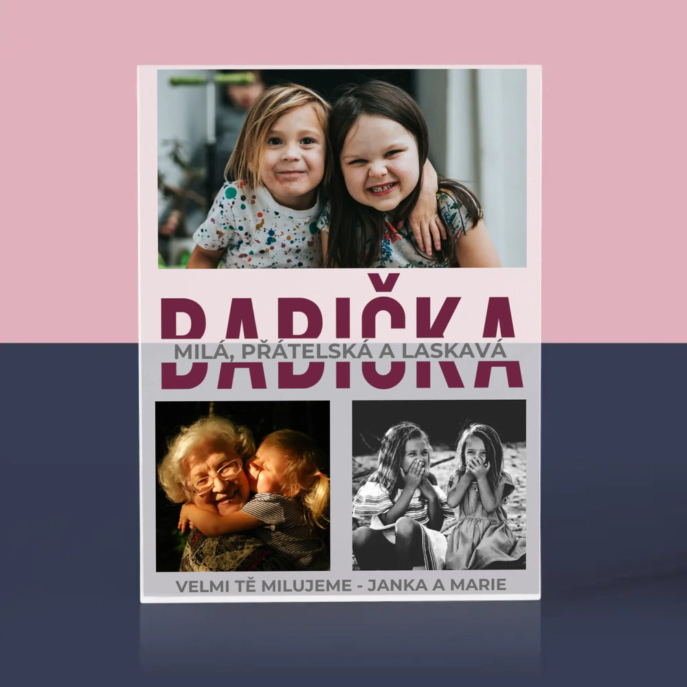 Fotokoláž: Babička - Akrylový blok - vertikální