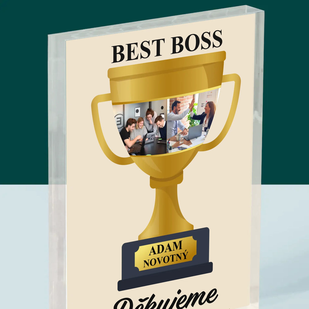 Fotokoláž: Best Boss Pohár - Akrylový blok - vertikální