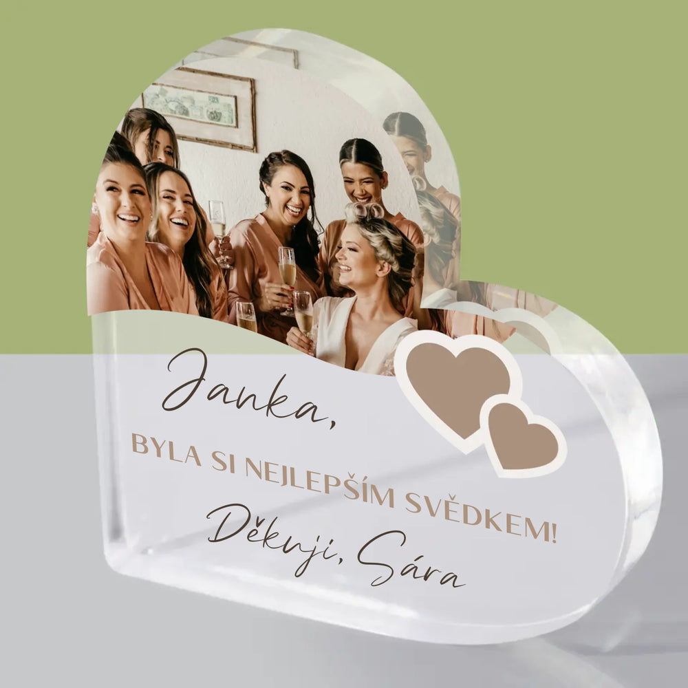 Fotokoláž: Děkovná Koláž Pro Svědka - Akrylový blok srdce