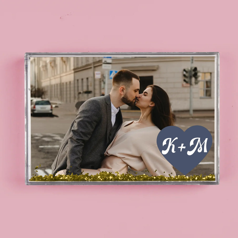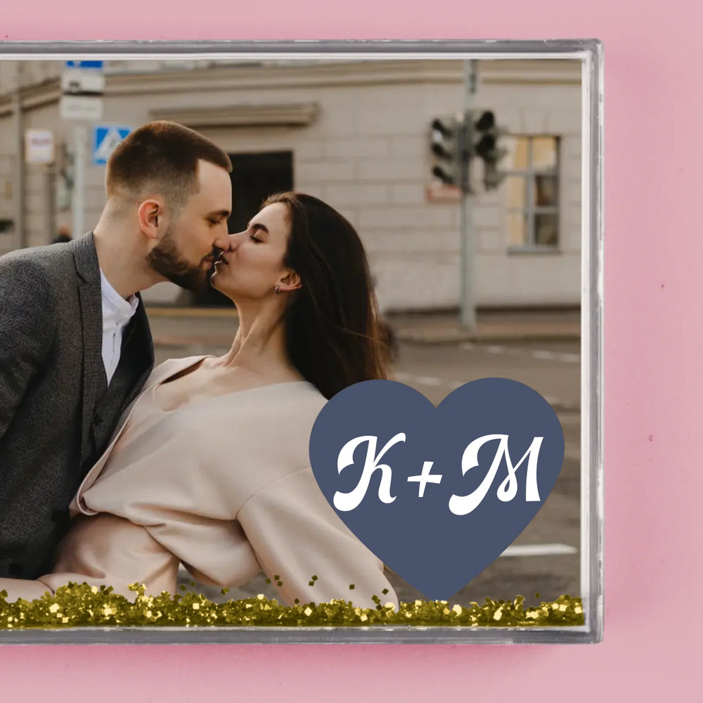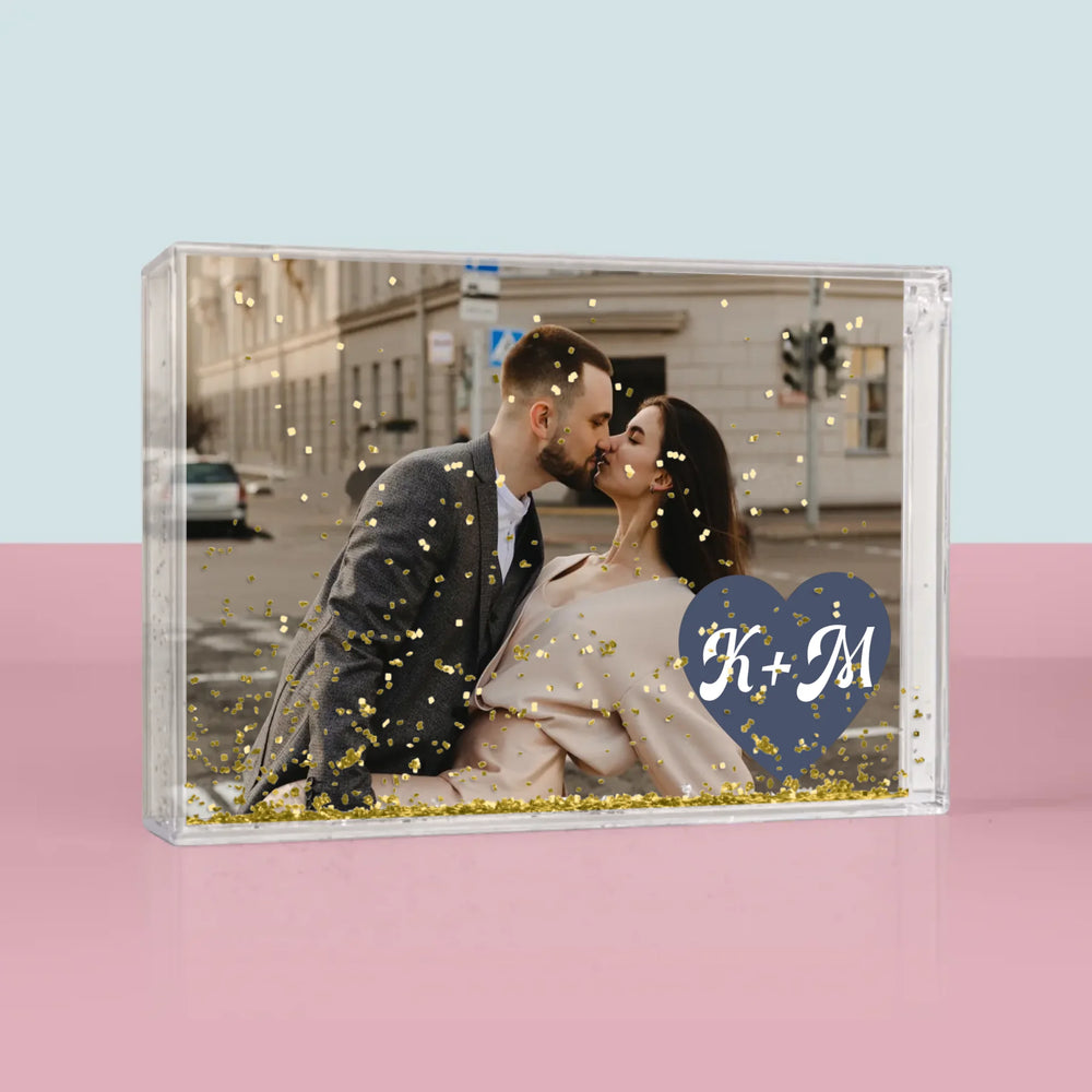 Fotokoláž: Iniciály Srdce - Sněžící fotorámeček