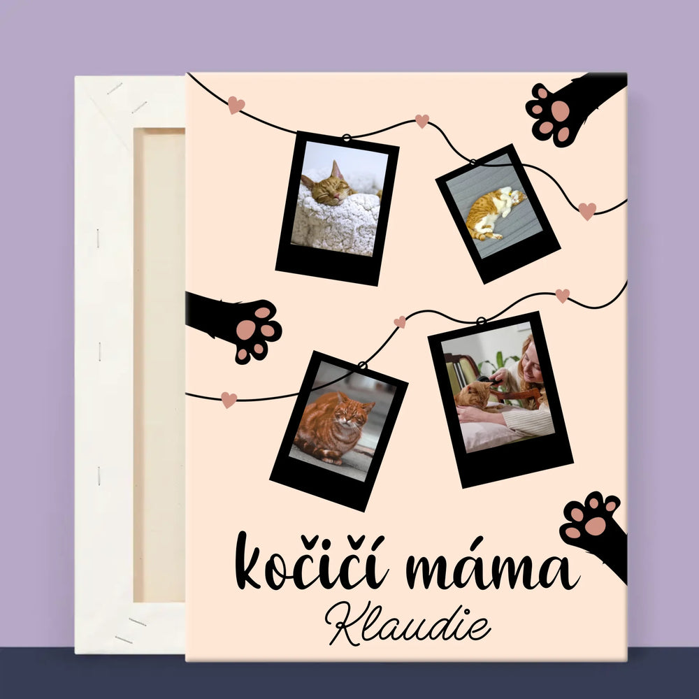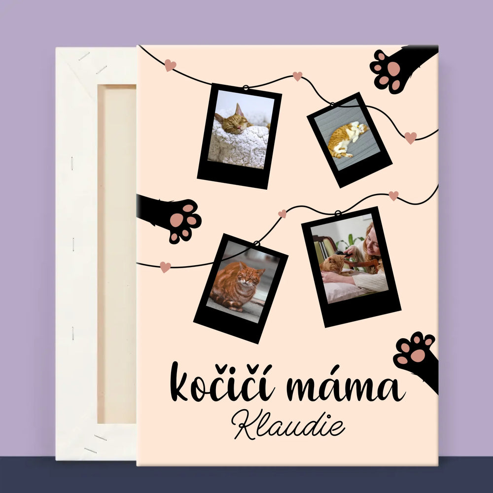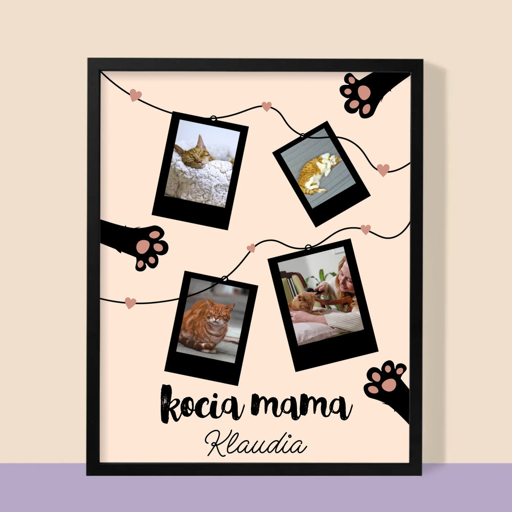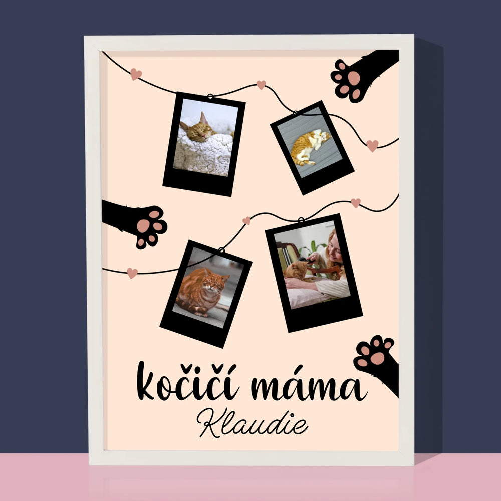 Fotokoláž: Kočičí Máma Polaroidy - Tisk v rámečku