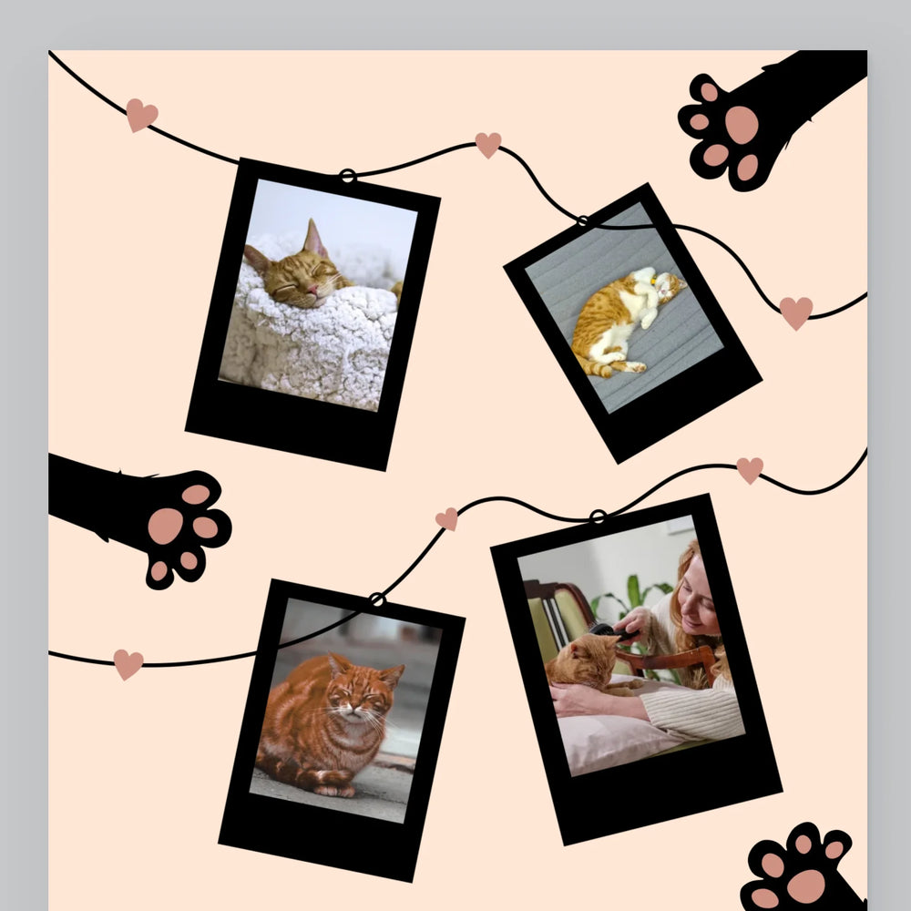 Fotokoláž: Kočičí Máma Polaroidy - Tisk V Rámečku