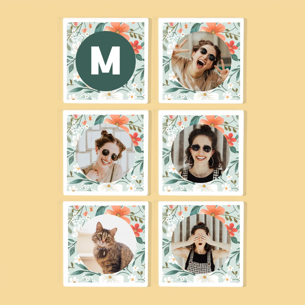 Fotokoláž: Květinový Monogram - Podtácky pod hrnky