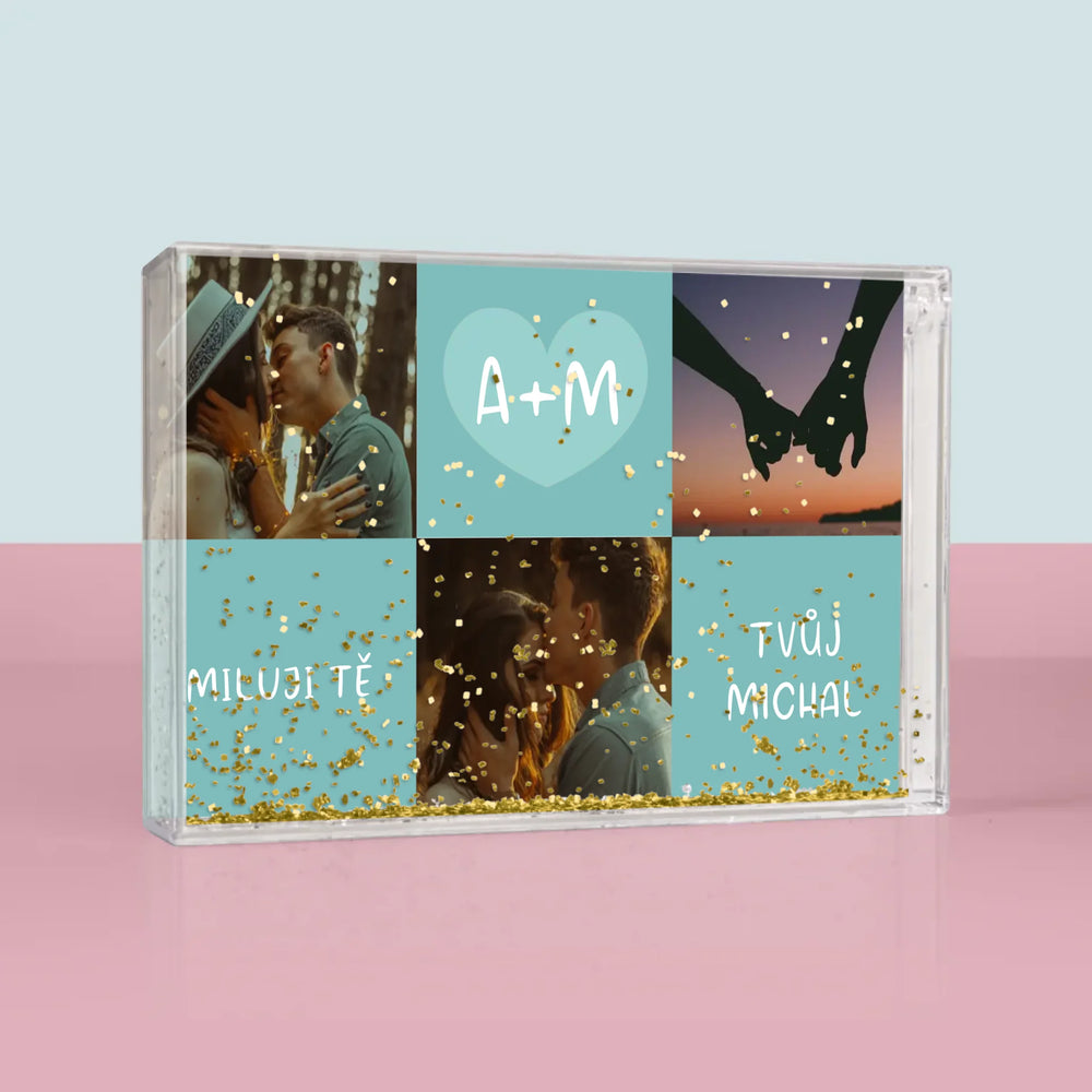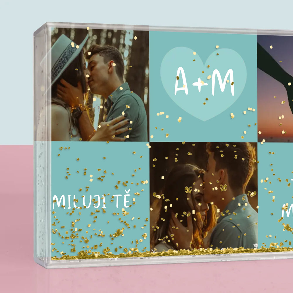 Fotokoláž: Miluji Tě Iniciály - Sněžící fotorámeček