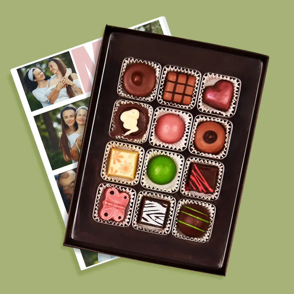 Lahodné belgické čokoládové pralinky v elegantní Krabici s naší vlastní personalizací.