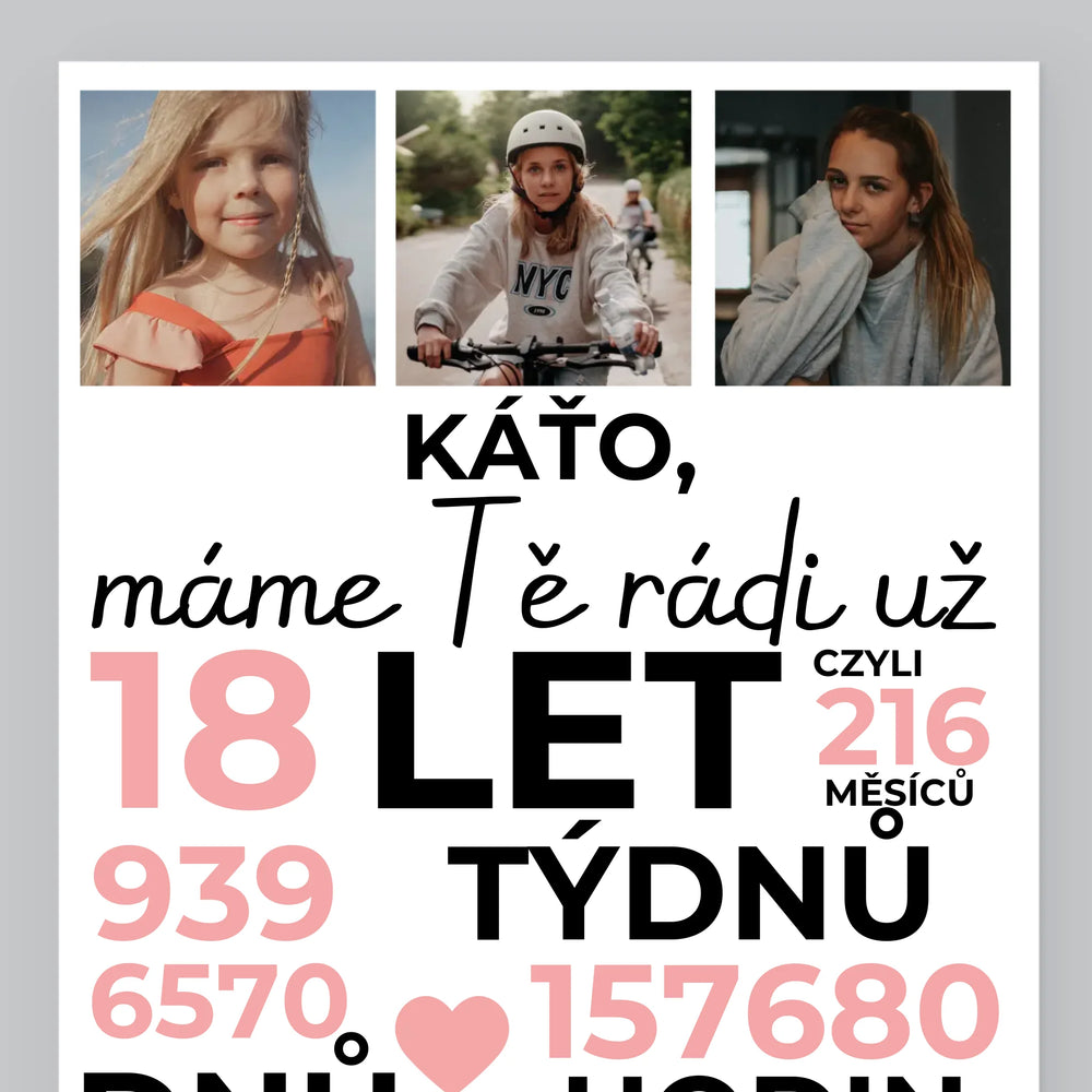 Fotokoláž: Máme Tě Rádi Už 18 Let - Tisk v rámečku