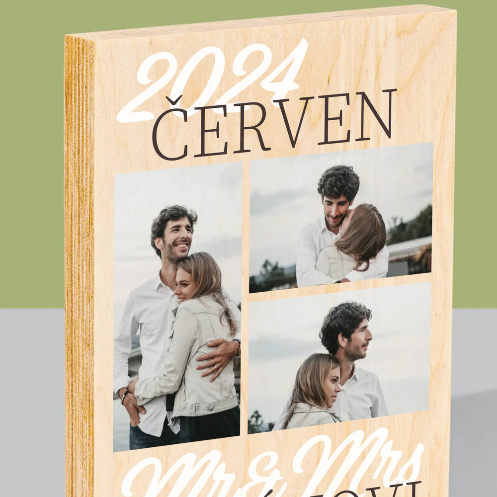 Fotokoláž: Mr&Mrs Datum - Tisk na dřevo - vertikální
