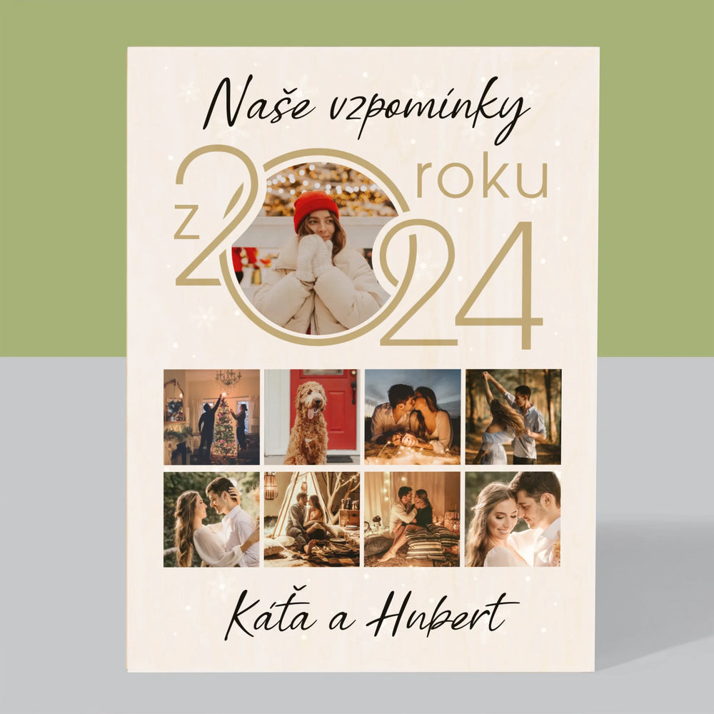 Fotokoláž: Naše Vzpomínky Z Roku - Tisk na dřevo - vertikální