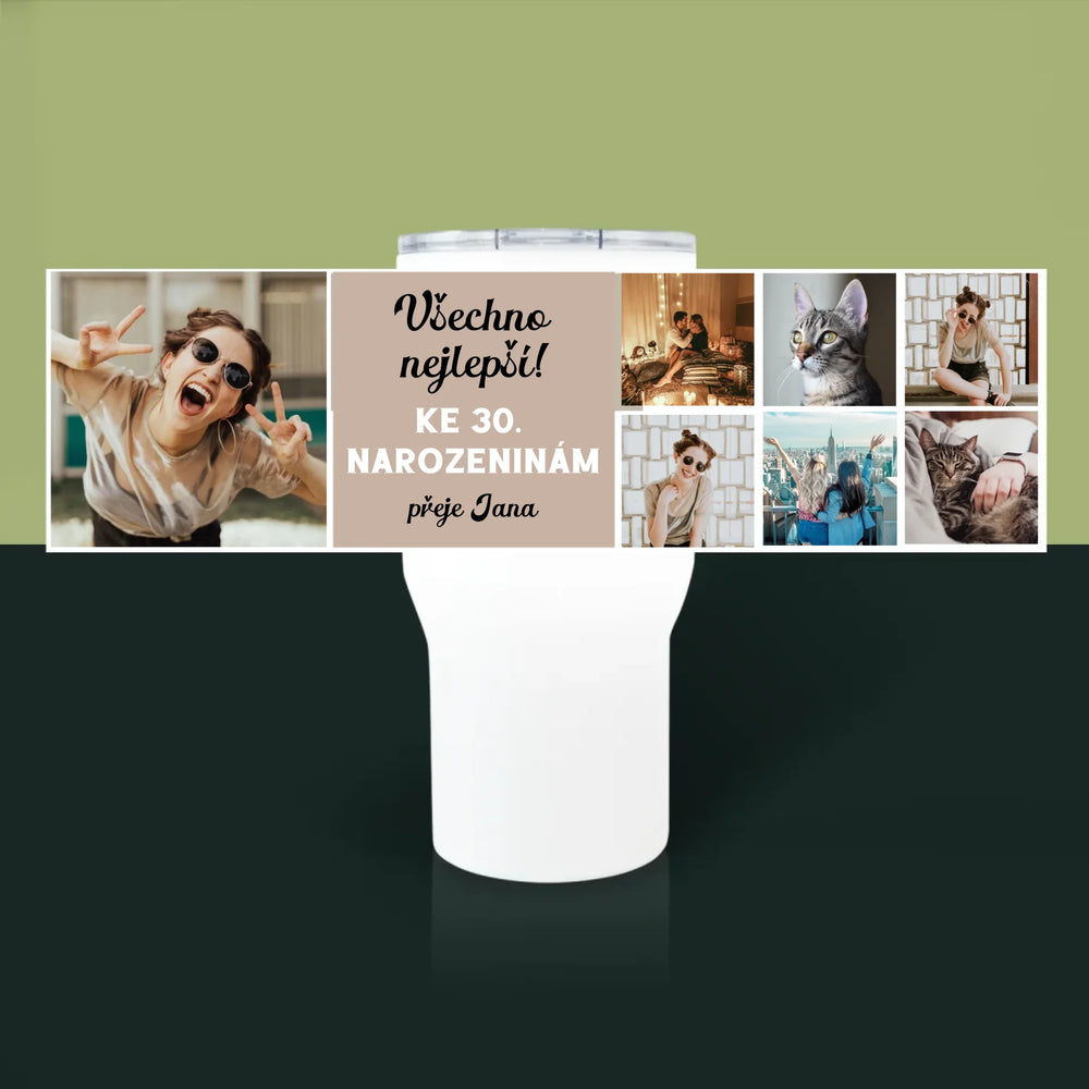 Fotokoláž: Narozeniny - Termohrnek bílý