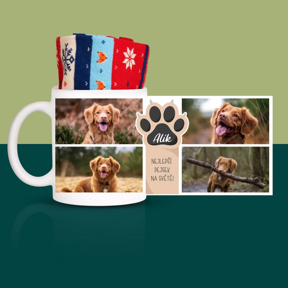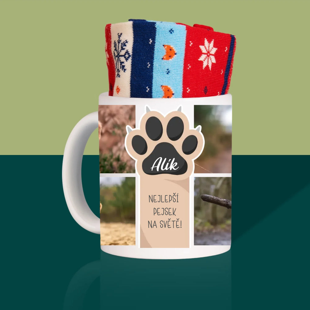 Fotokoláž: Nejlepší Pejsek - Zimní ponožky v hrnku