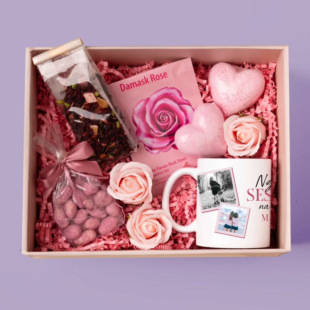 Fotokoláž: Nejlepší Sestra - Dárková sada s hrnkem a růžovým spa