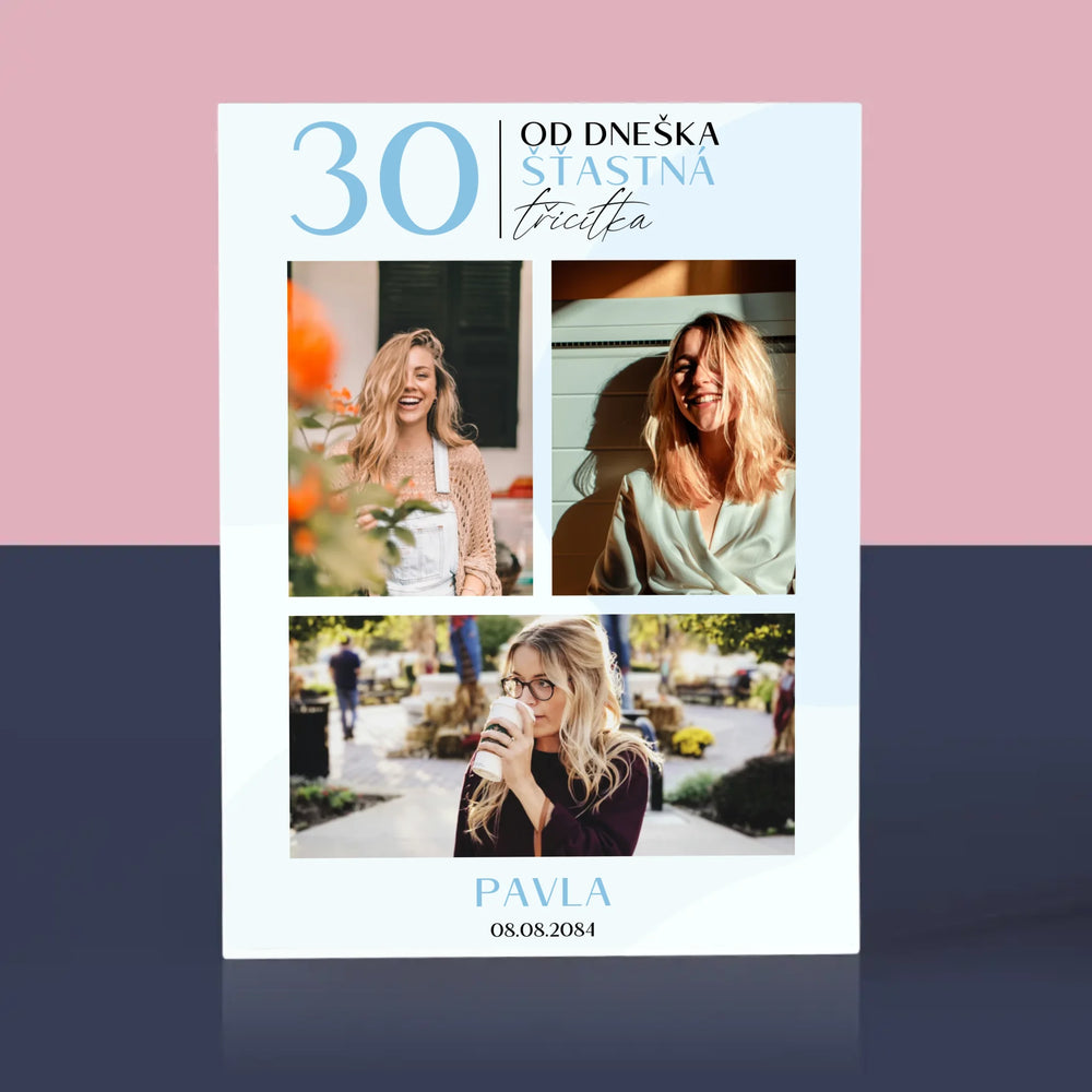Fotokoláž: Od Dneška Šťastná 30 - Akrylový blok - vertikální
