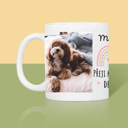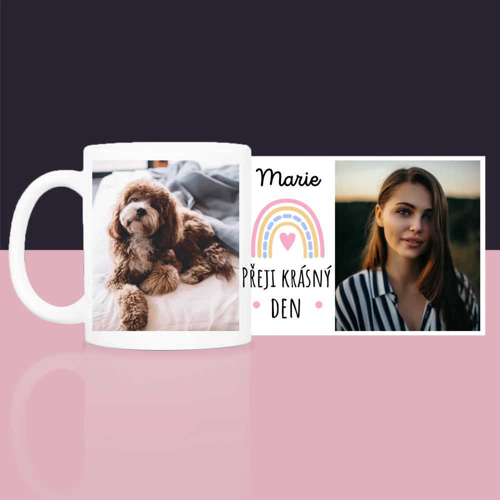 Fotokoláž: Přeji Krásný Den - Dárková sada s hrnkem, čajem a sladkostmi