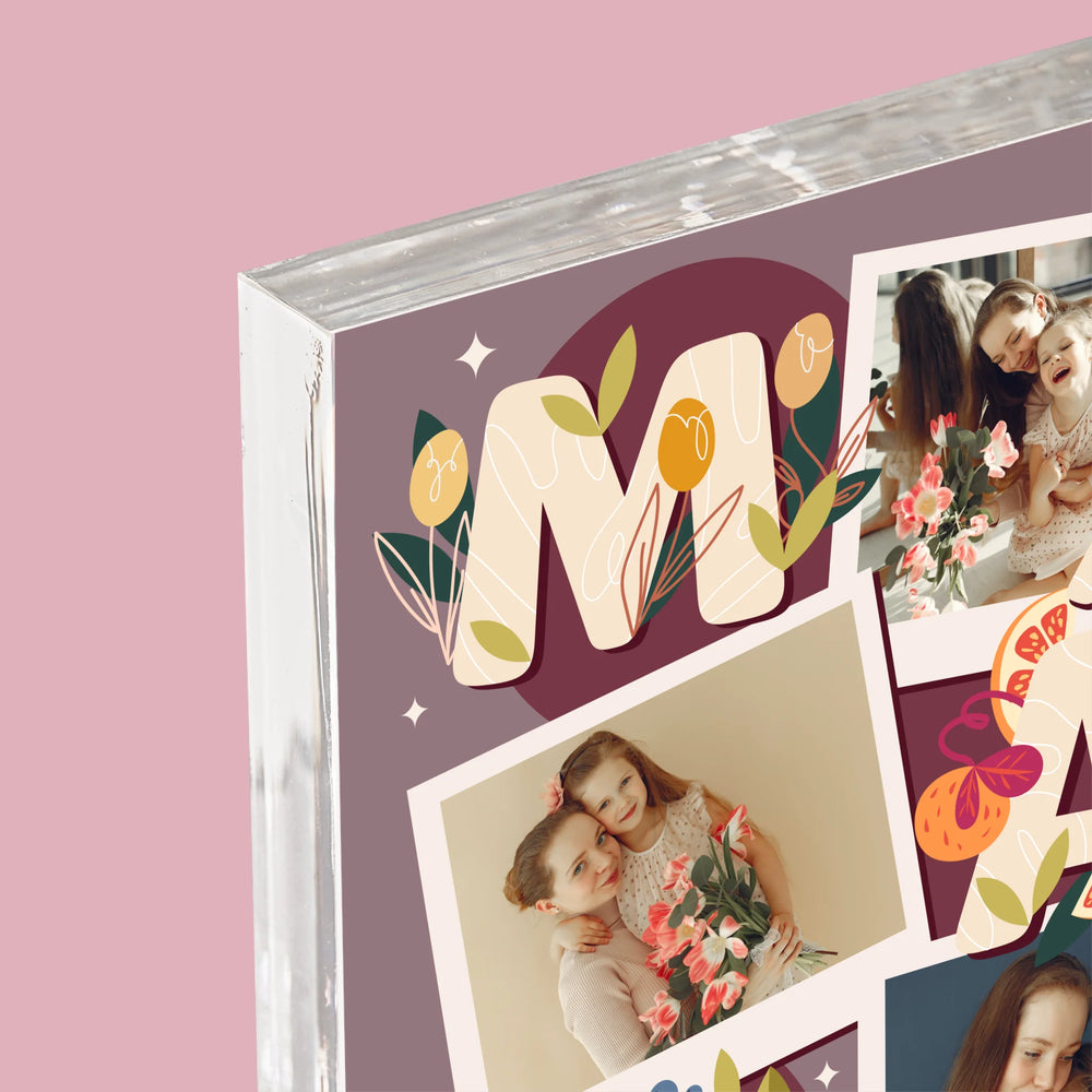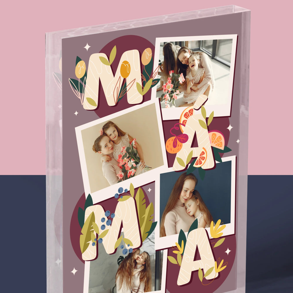 Fotokoláž: Písmenka Máma - Akrylový blok - vertikální