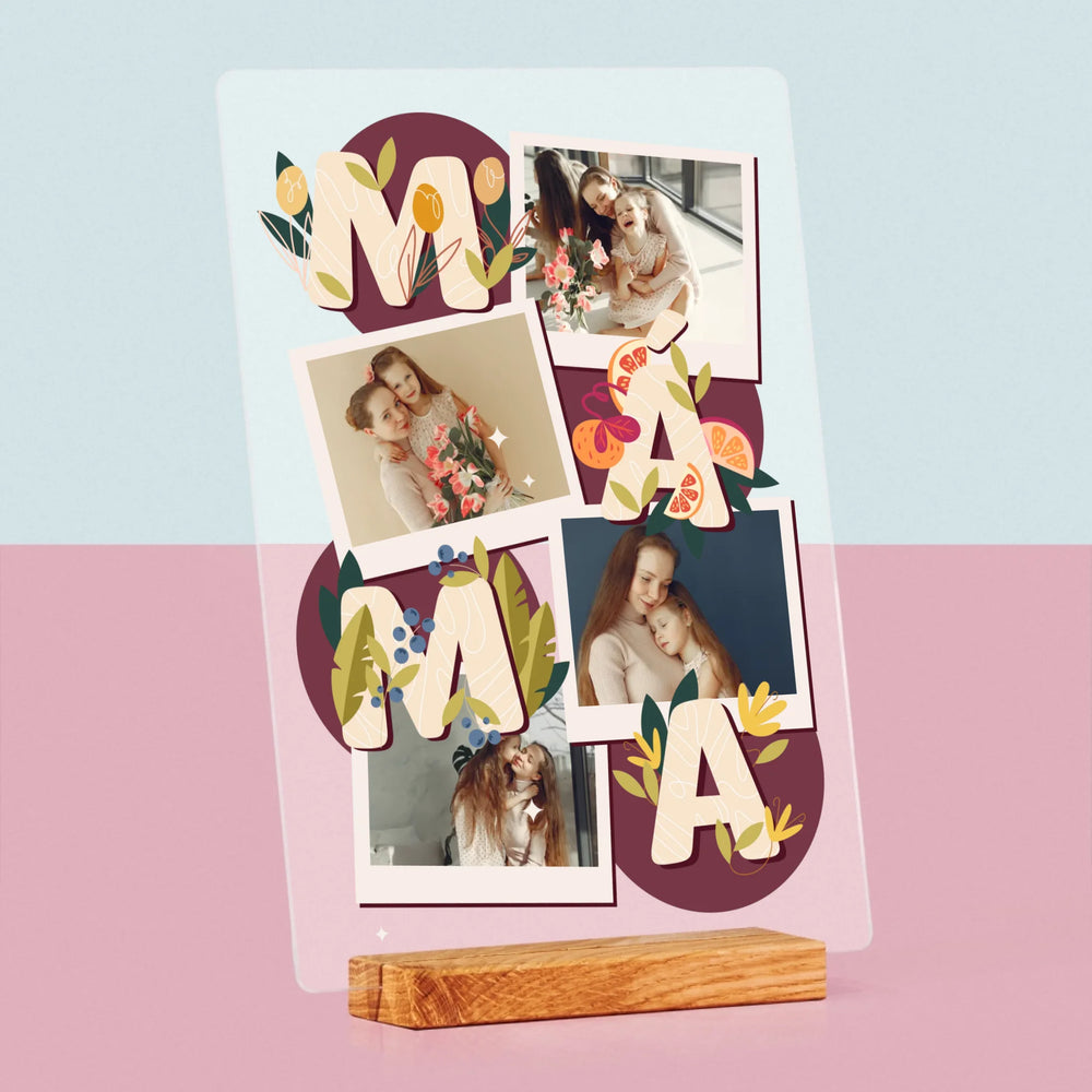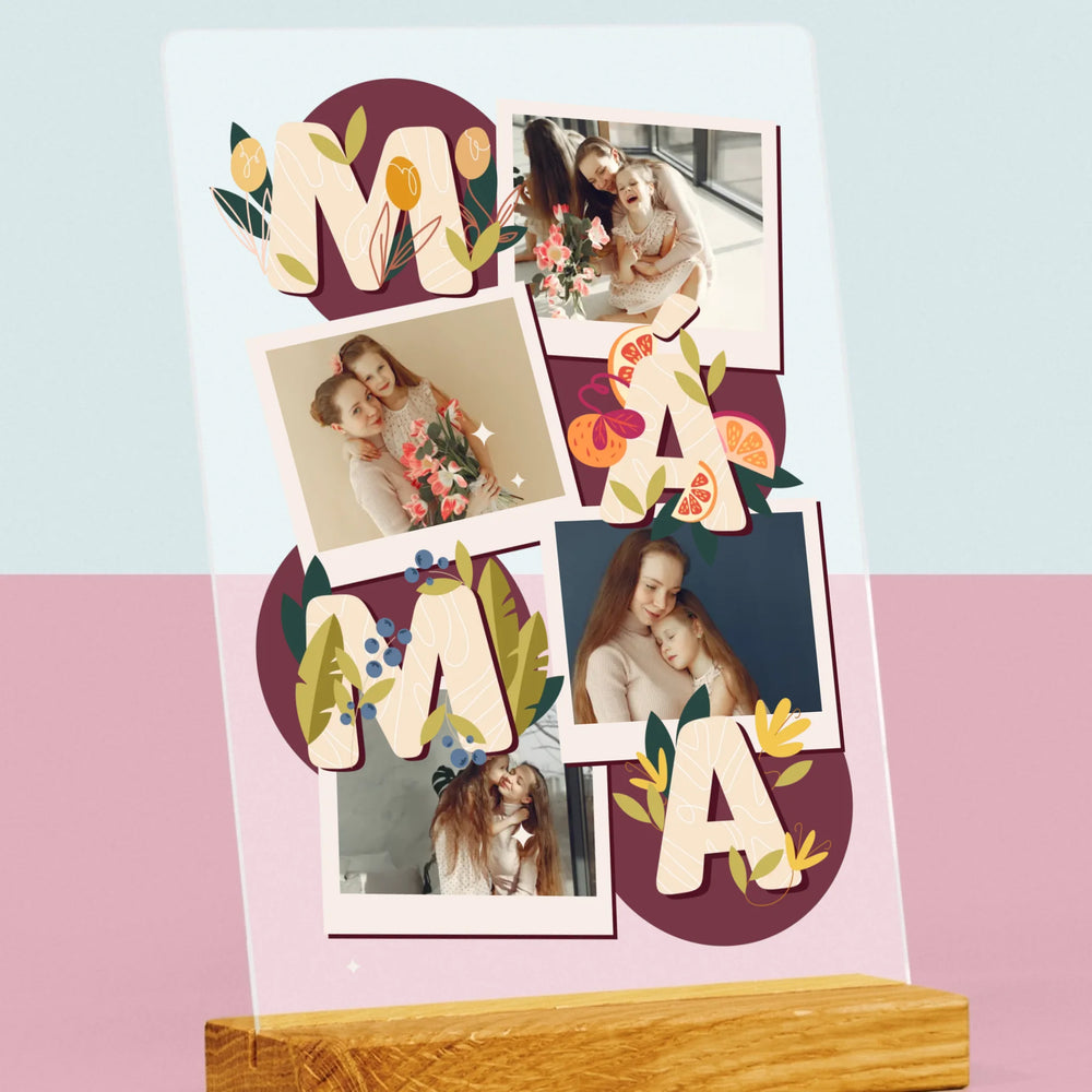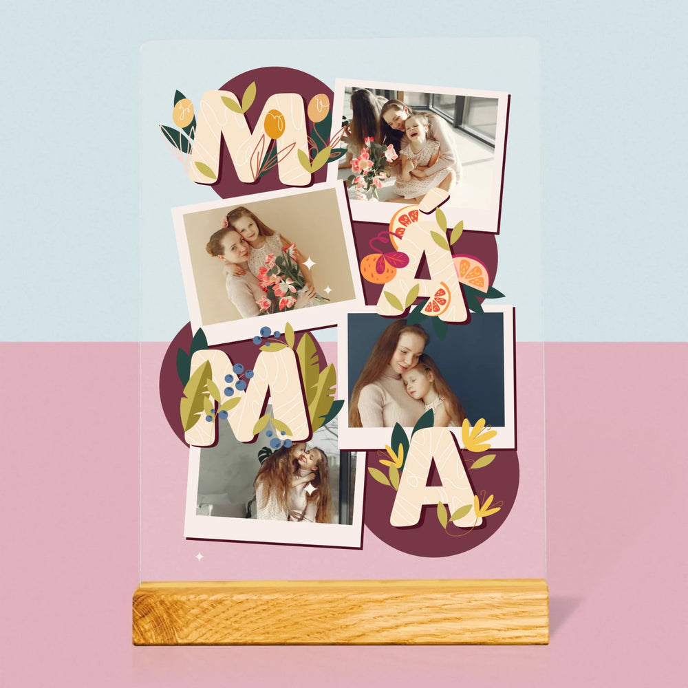 Fotokoláž: Písmenka Máma - Tisk na akrylovém skle LED