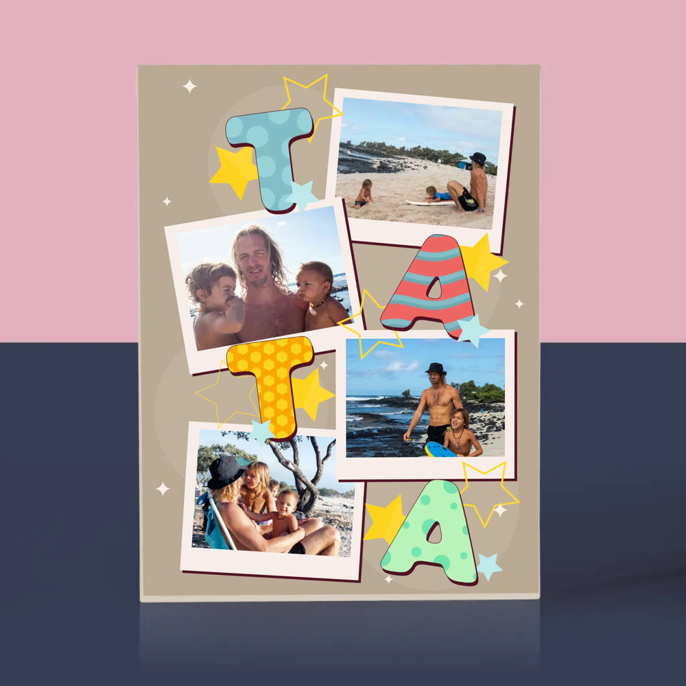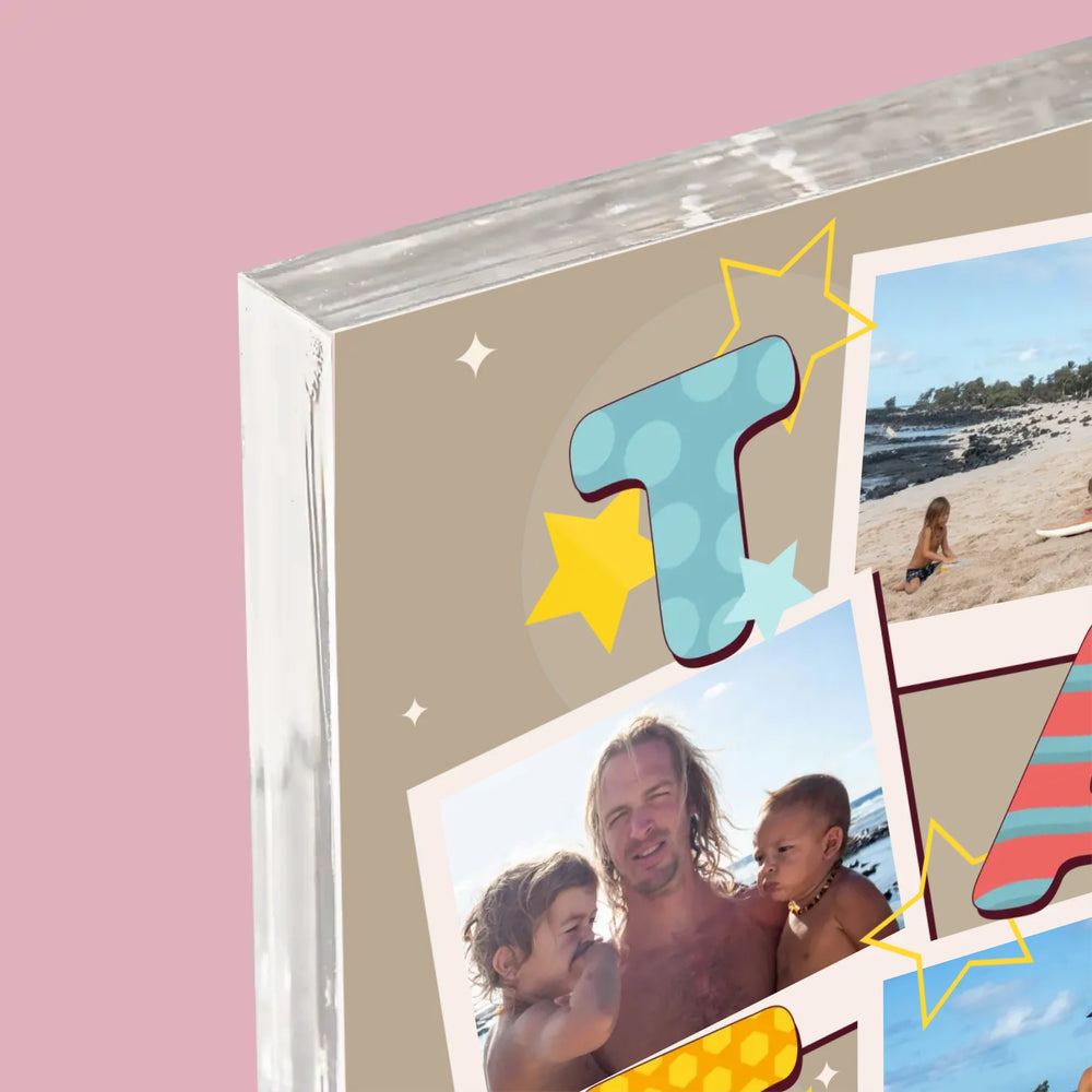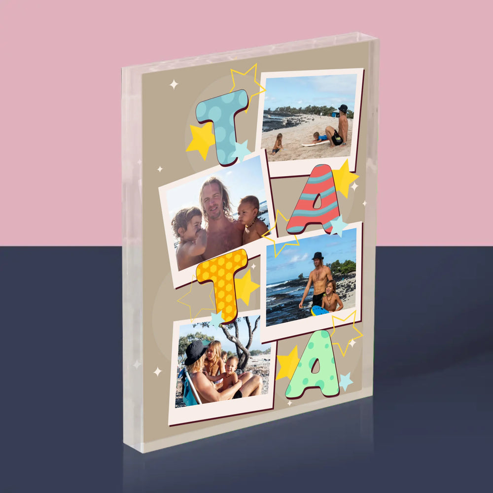 Fotokoláž: Písmenka Táta - Akrylový blok - vertikální