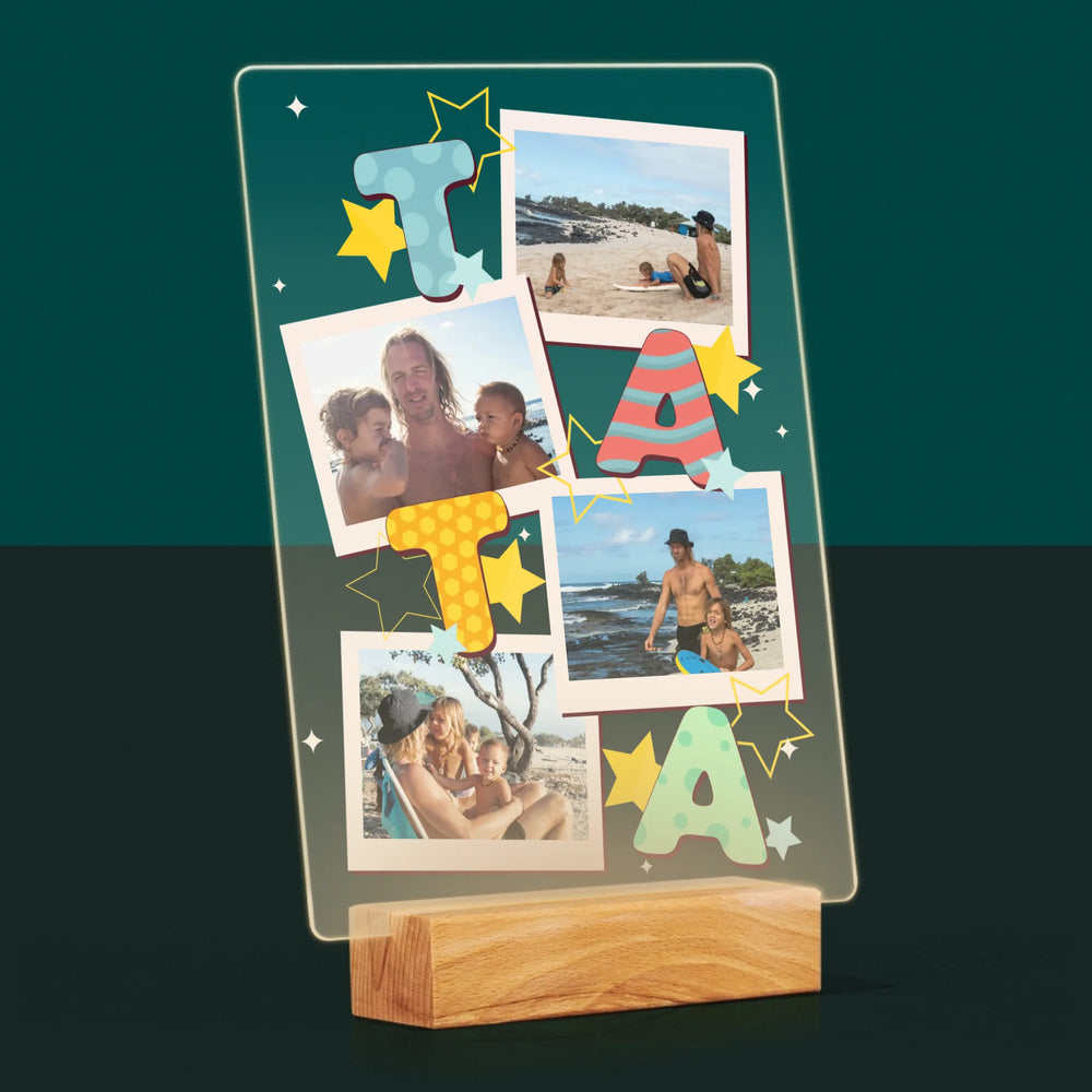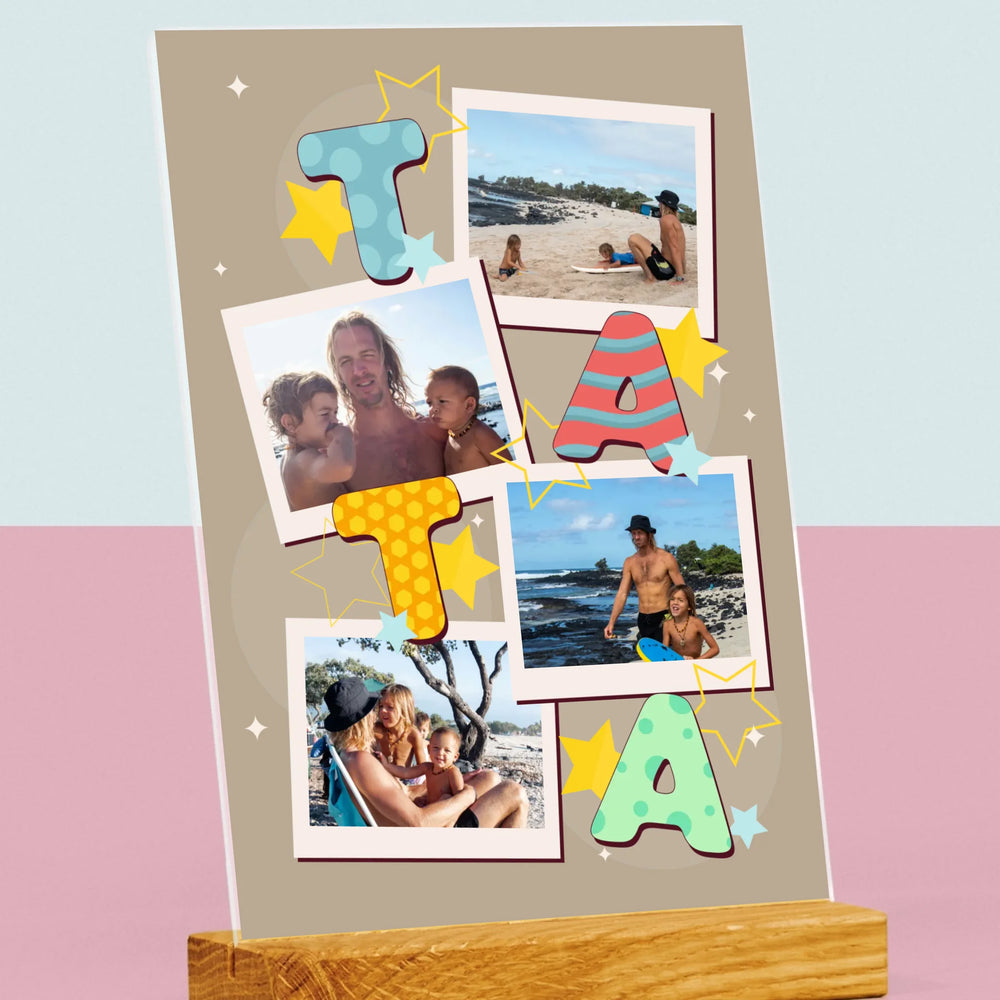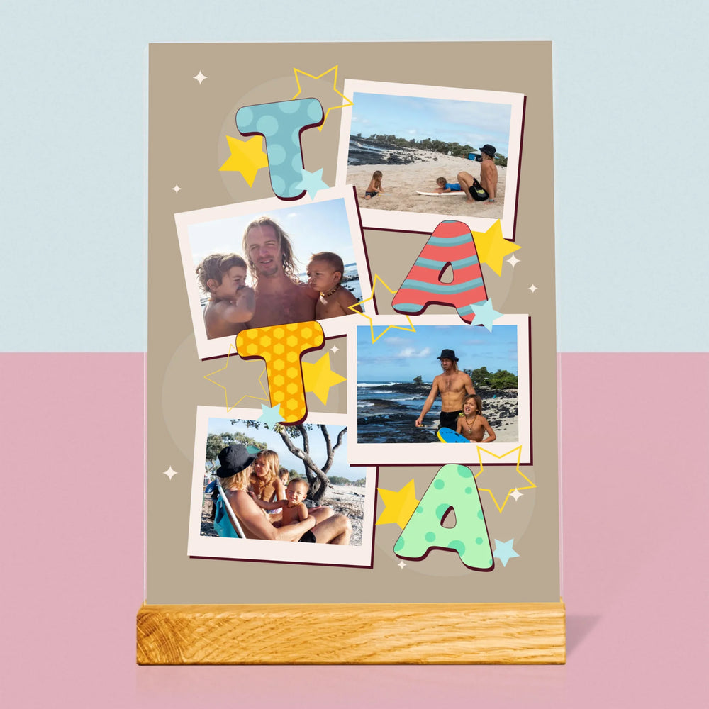 Fotokoláž: Písmenka Táta - Tisk na akrylovém skle