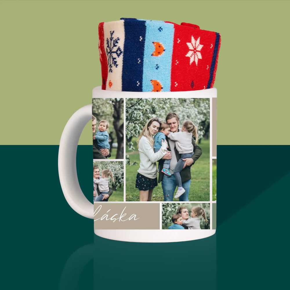 Fotokoláž: Rodinná Koláž Z Fotek - Zimní ponožky v hrnku