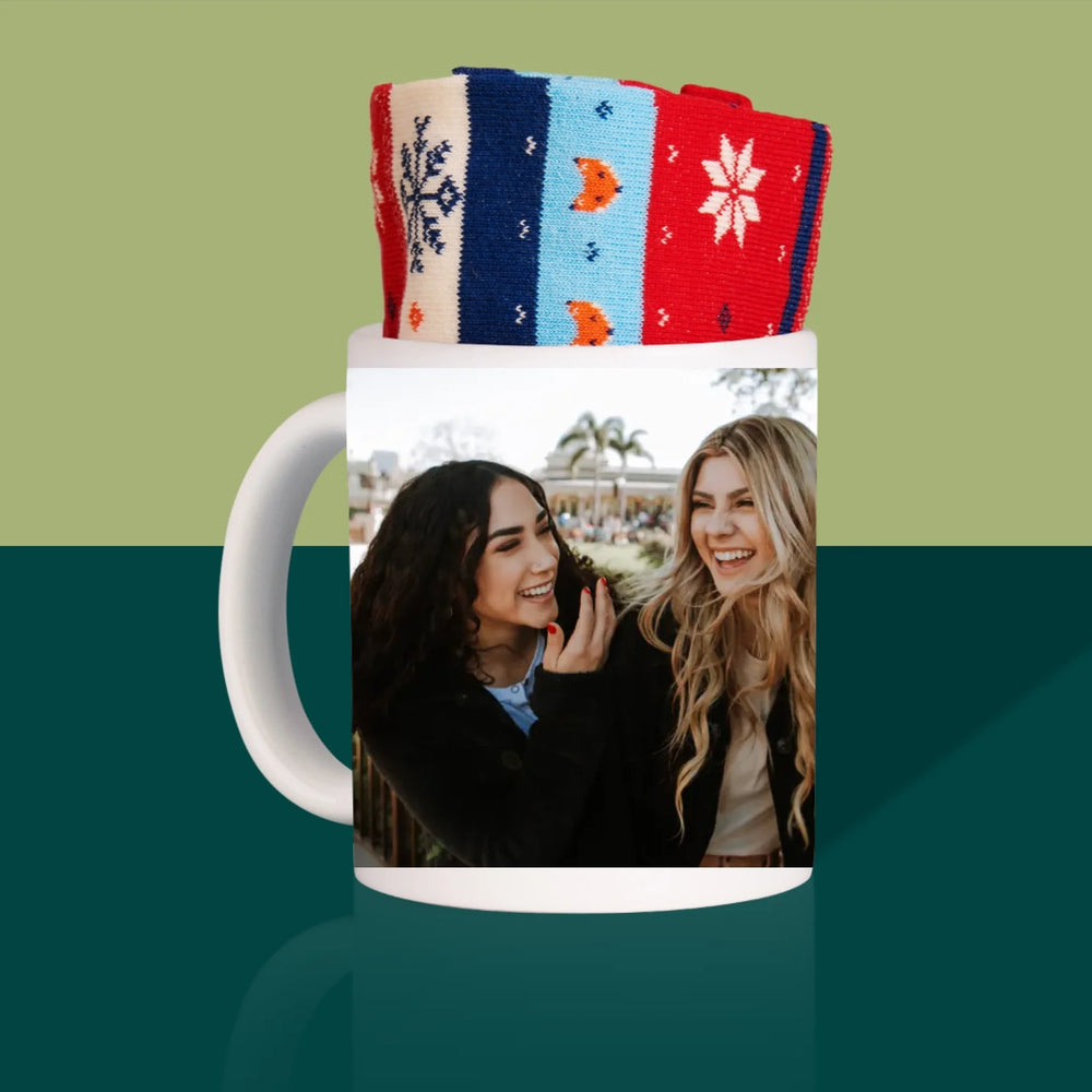Vysoce kvalitní hrnek s personalizací pod vaším výběrem a ponožkami uvnitř.