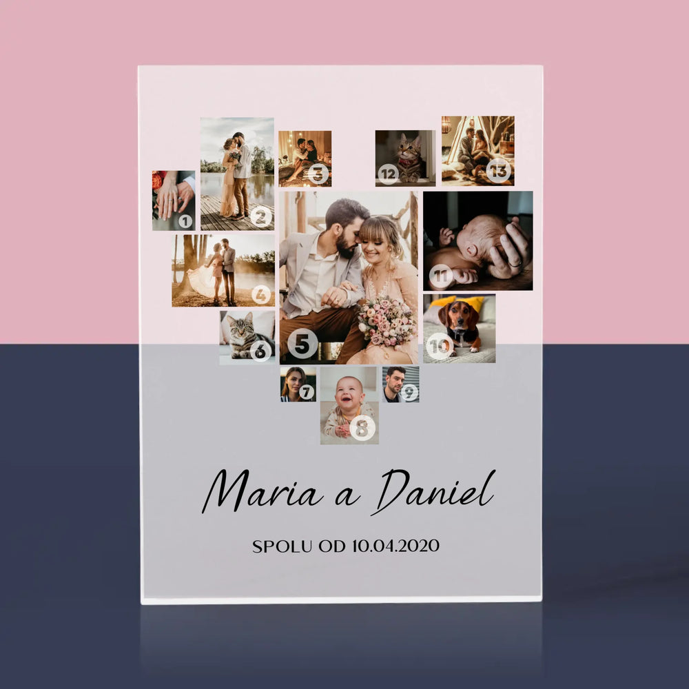 Fotokoláž: Srdce Koláž - Akrylový blok - vertikální