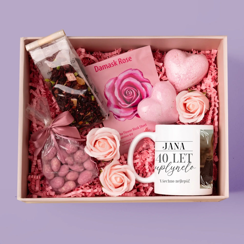 Fotokoláž: Uplynulo 40 Let - Dárková sada s hrnkem a růžovým spa