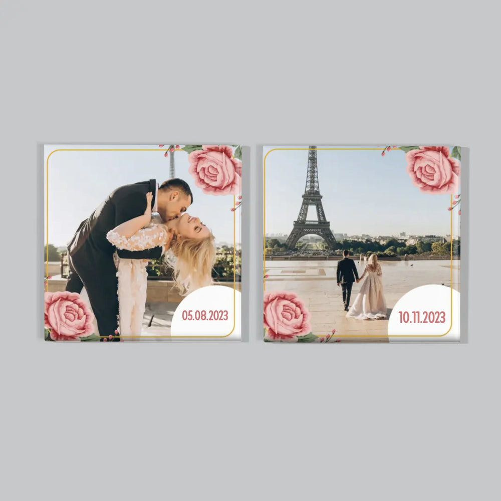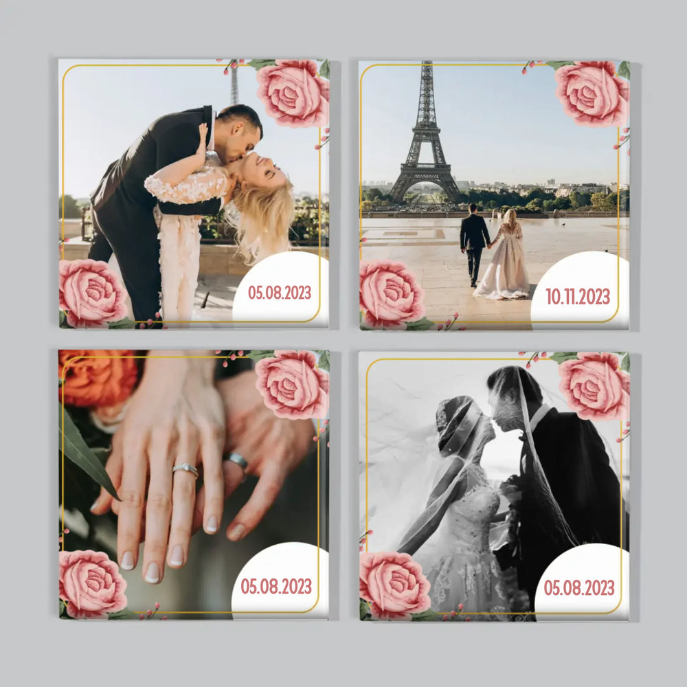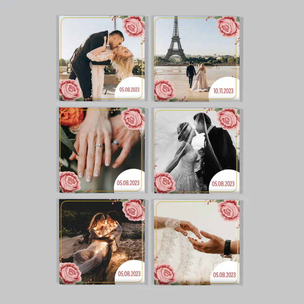Sada magnetů s vašimi fotografiemi a personalizovanými popisky.