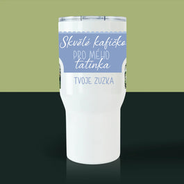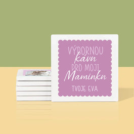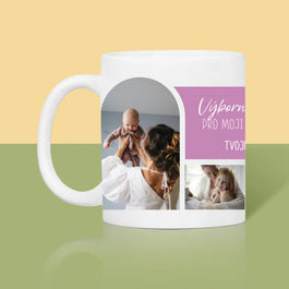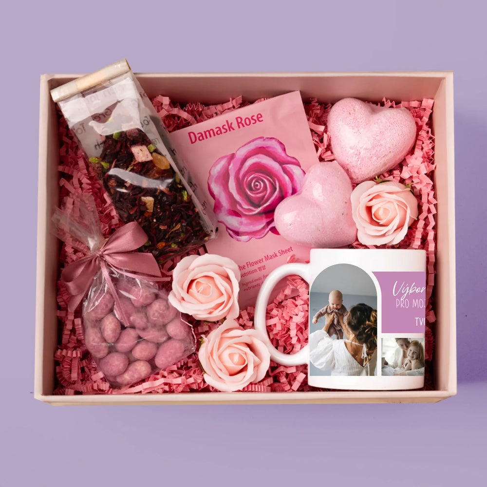 Fotokoláž: Výbornou Kávu, Mami - Dárková sada s hrnkem a růžovým spa