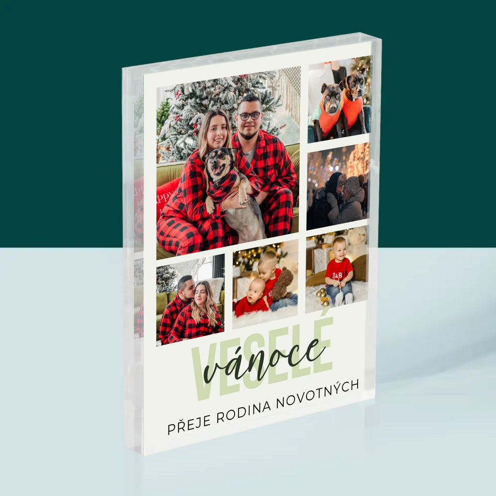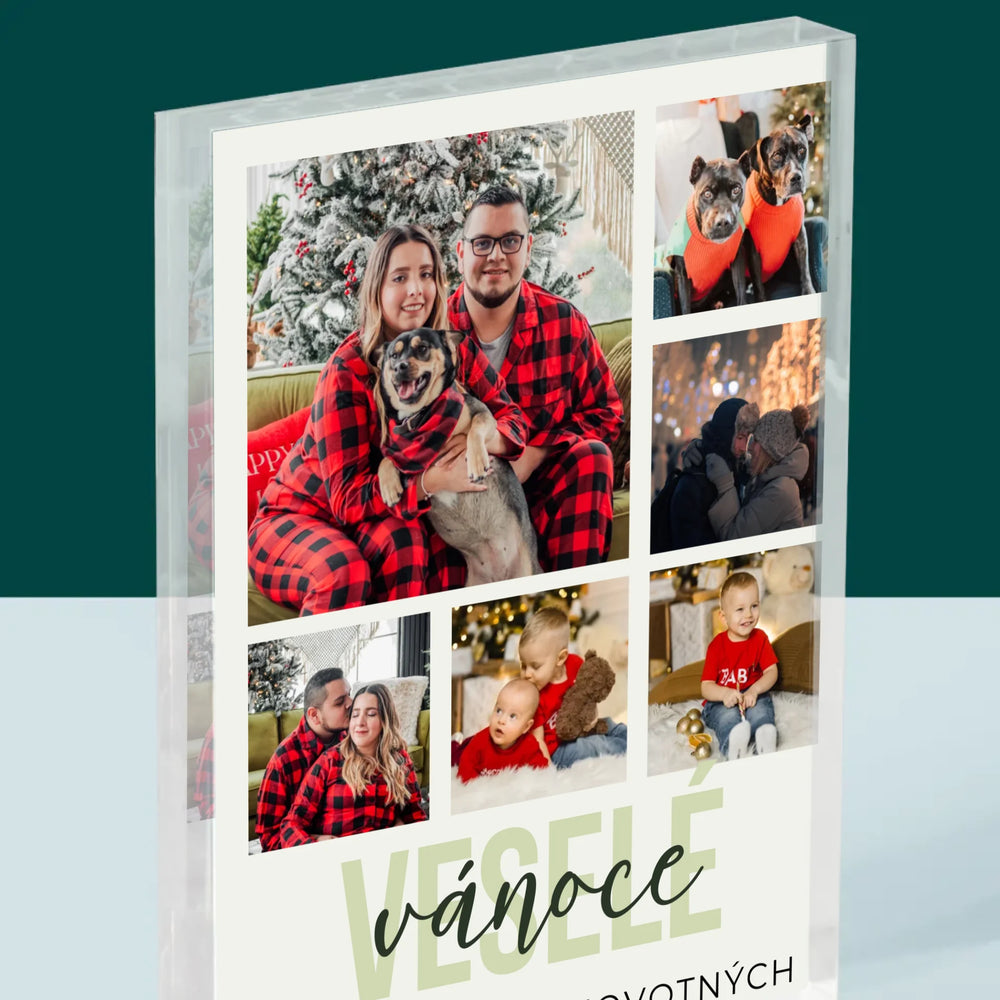 Fotokoláž: Veselé Vánoce - Akrylový blok - vertikální