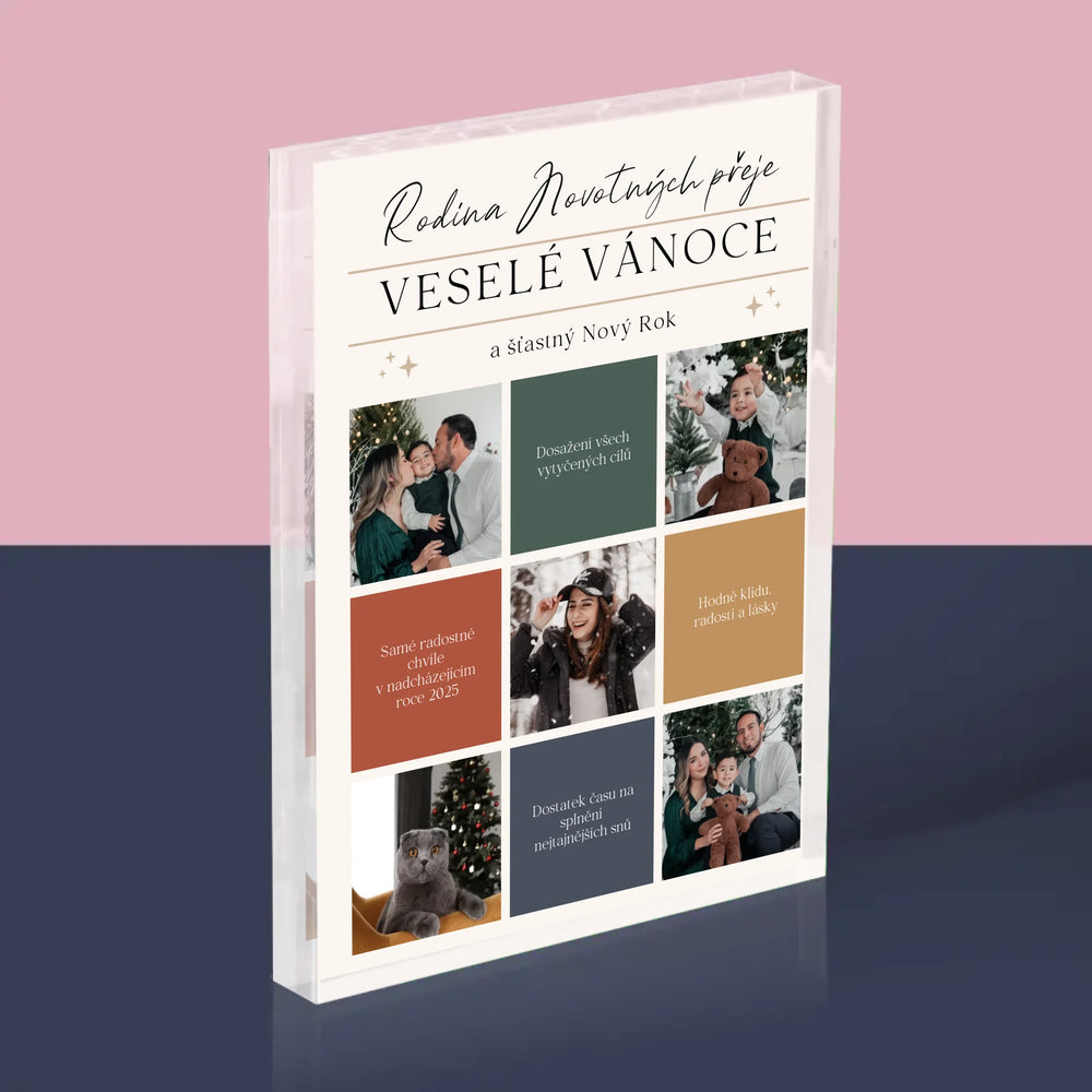 Fotokoláž: Veselé Vánoce Přání - Akrylový blok - vertikální