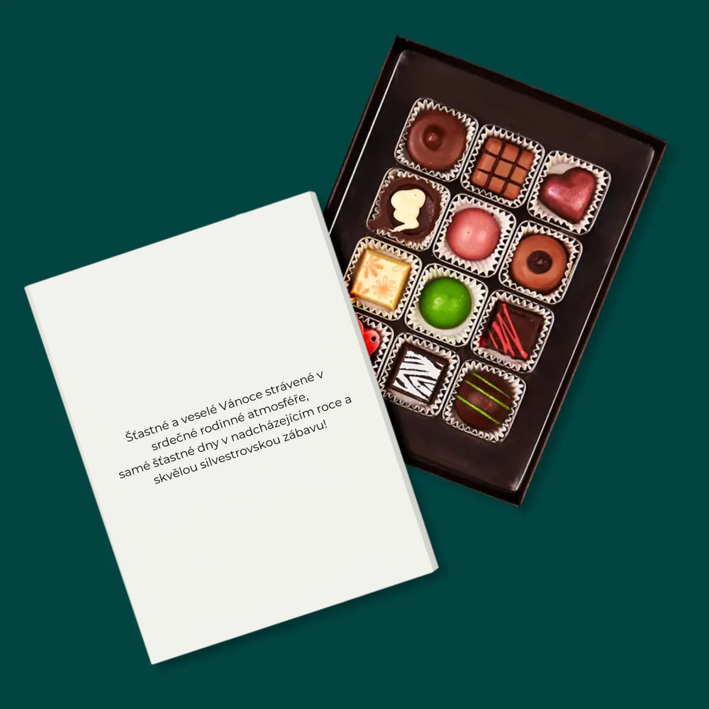 Lahodné belgické čokoládové pralinky v elegantní Krabici s naší vlastní personalizací.