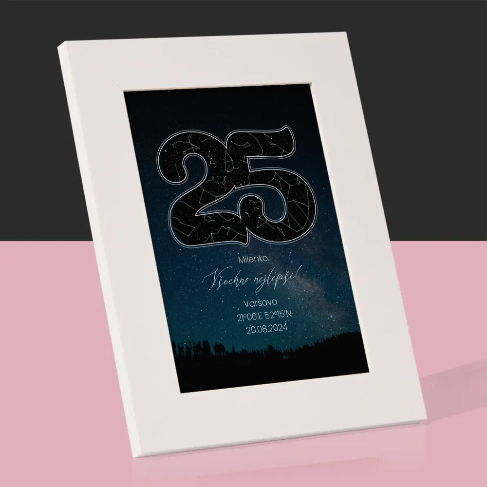 Hvězdná Mapa: Hvězdy K 25. Narozeninám - Fotorámeček - vertikální