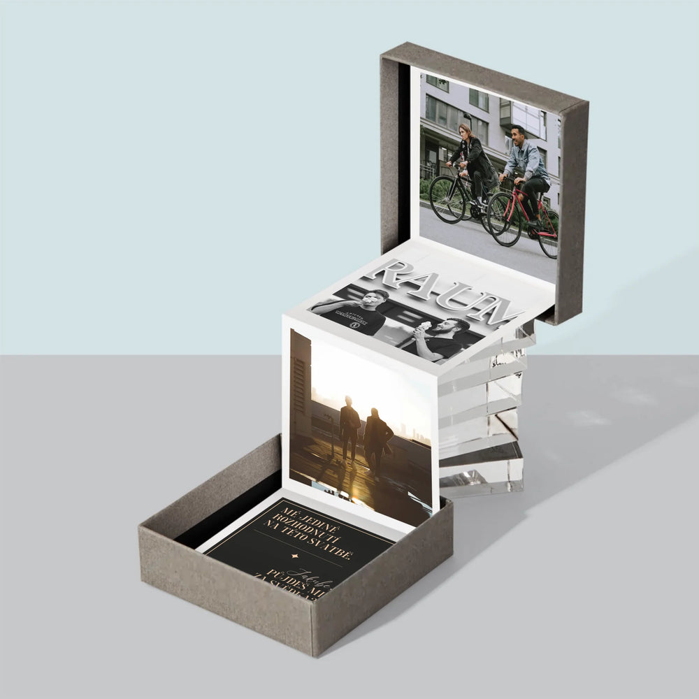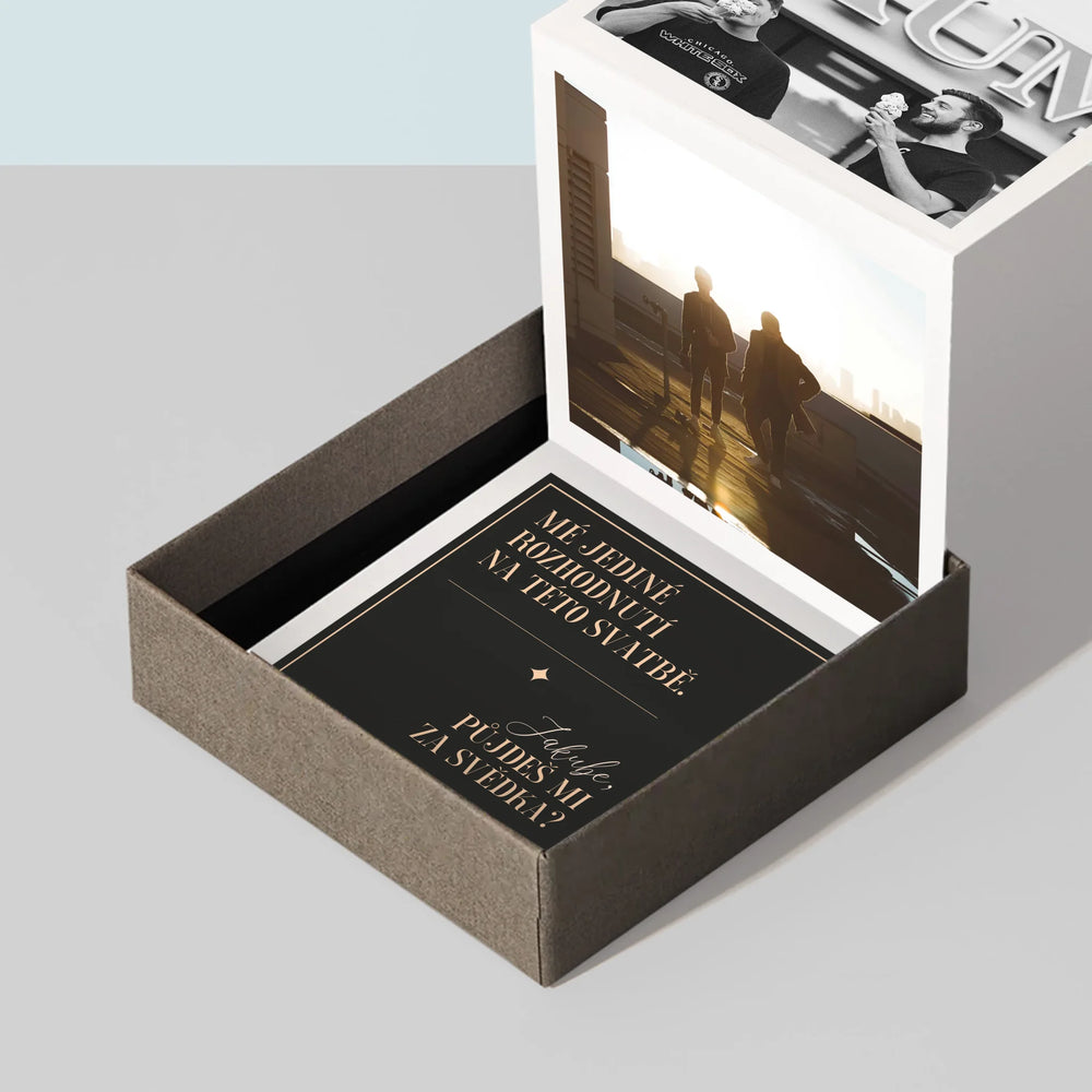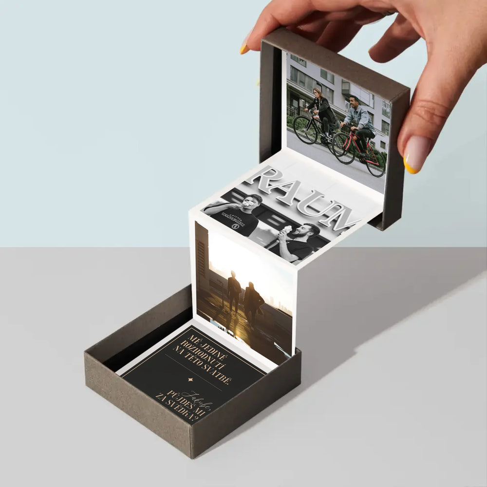 Sada harmoniky se třemi fotografiemi o rozměrech 6,68 x 6,68 cm a personalizovanými kartami s nápisem pro obdarovaného.