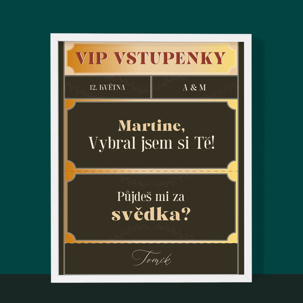 Jméno A Nápis: Vip Vstupenky Svědek - Tisk v rámečku