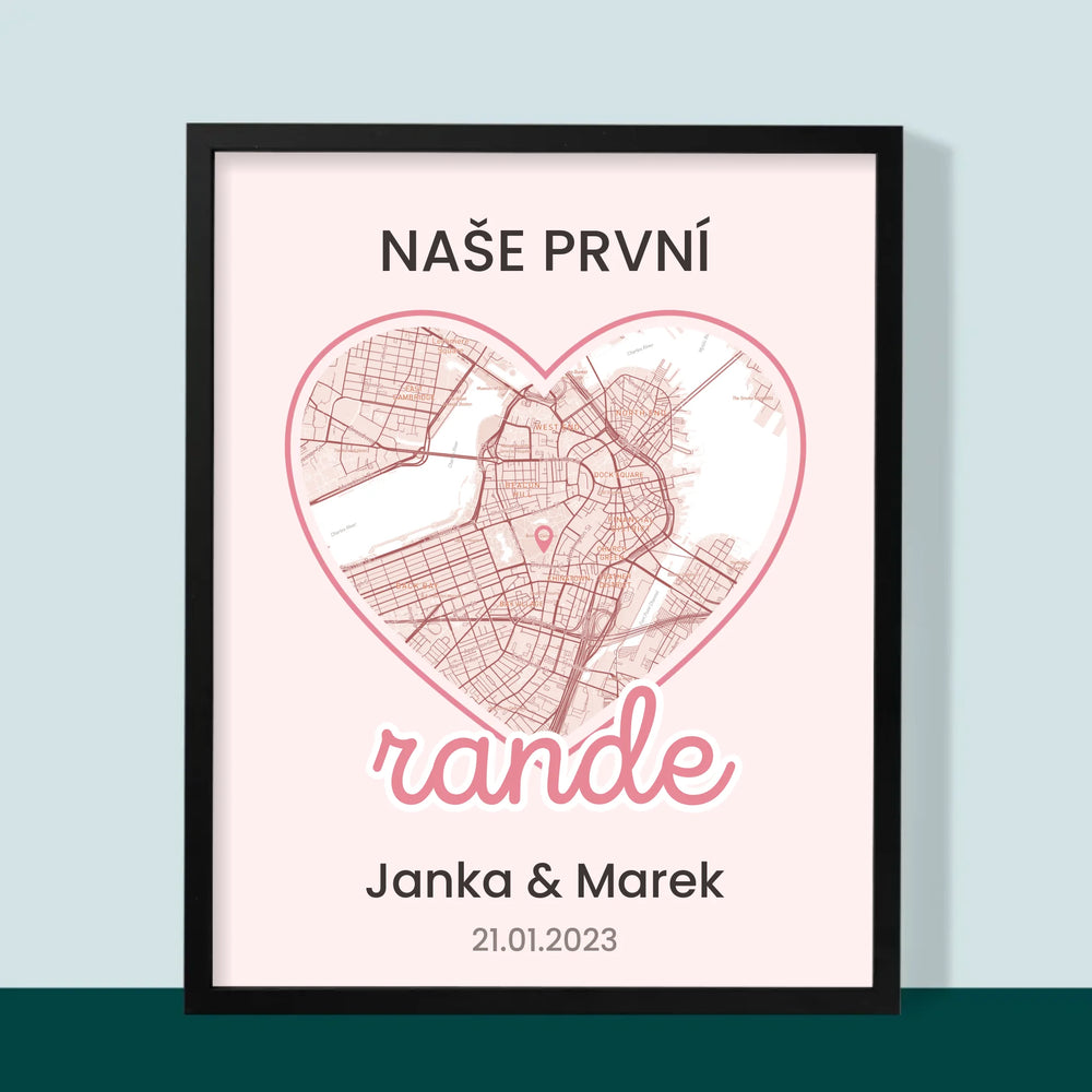 Mapa Města: Mapa Města: První Rande - Tisk v rámečku