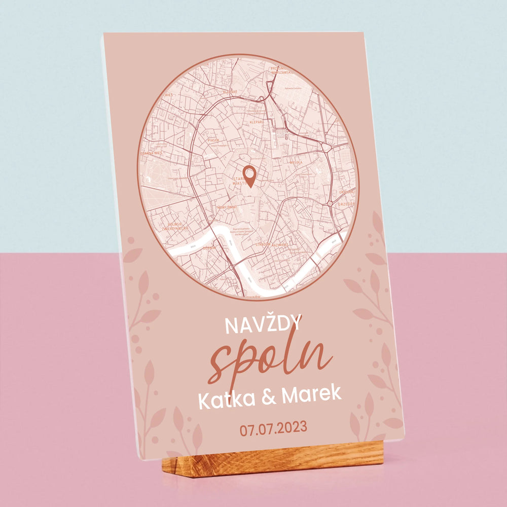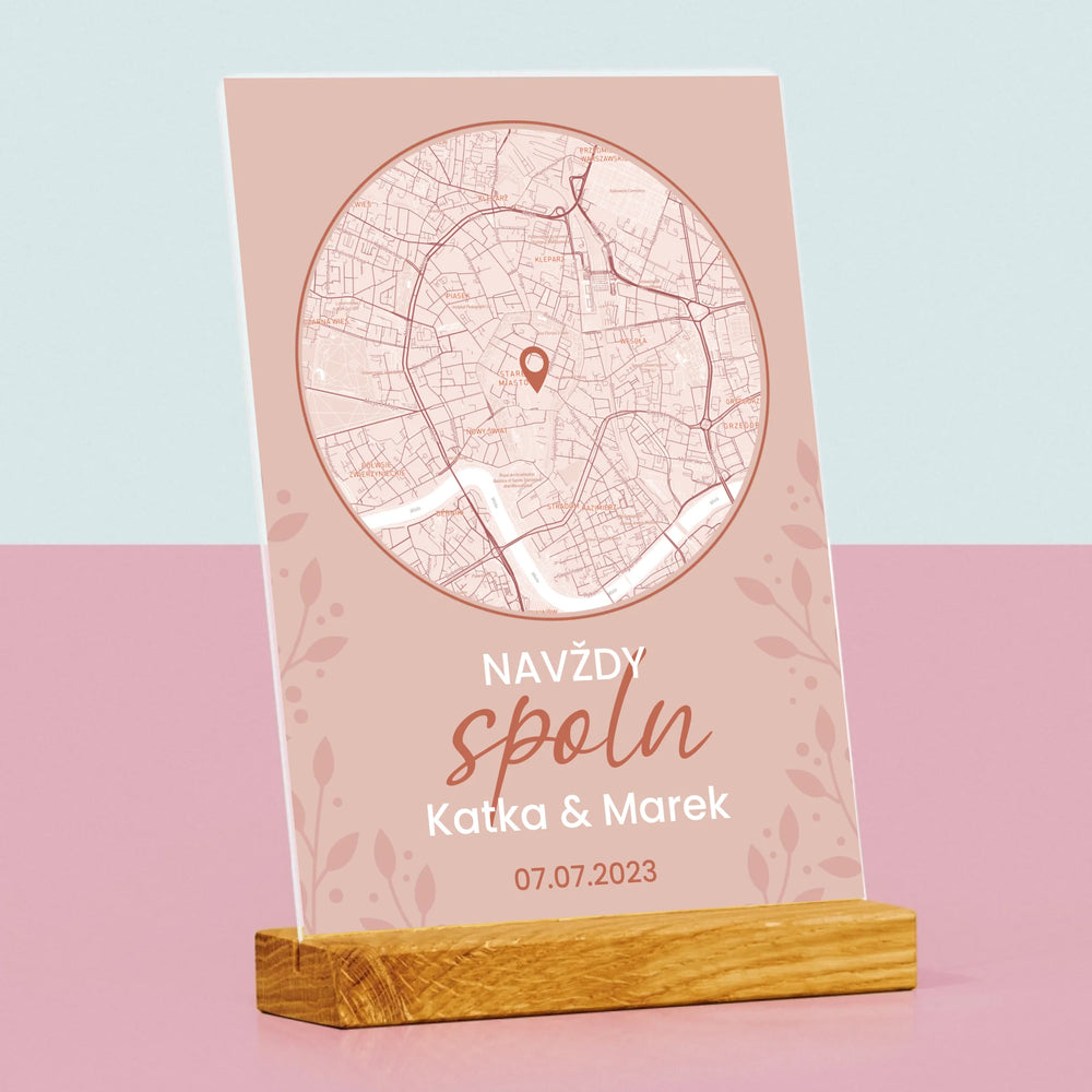 Mapa Města: Navždy Spolu - Tisk na akrylovém skle LED