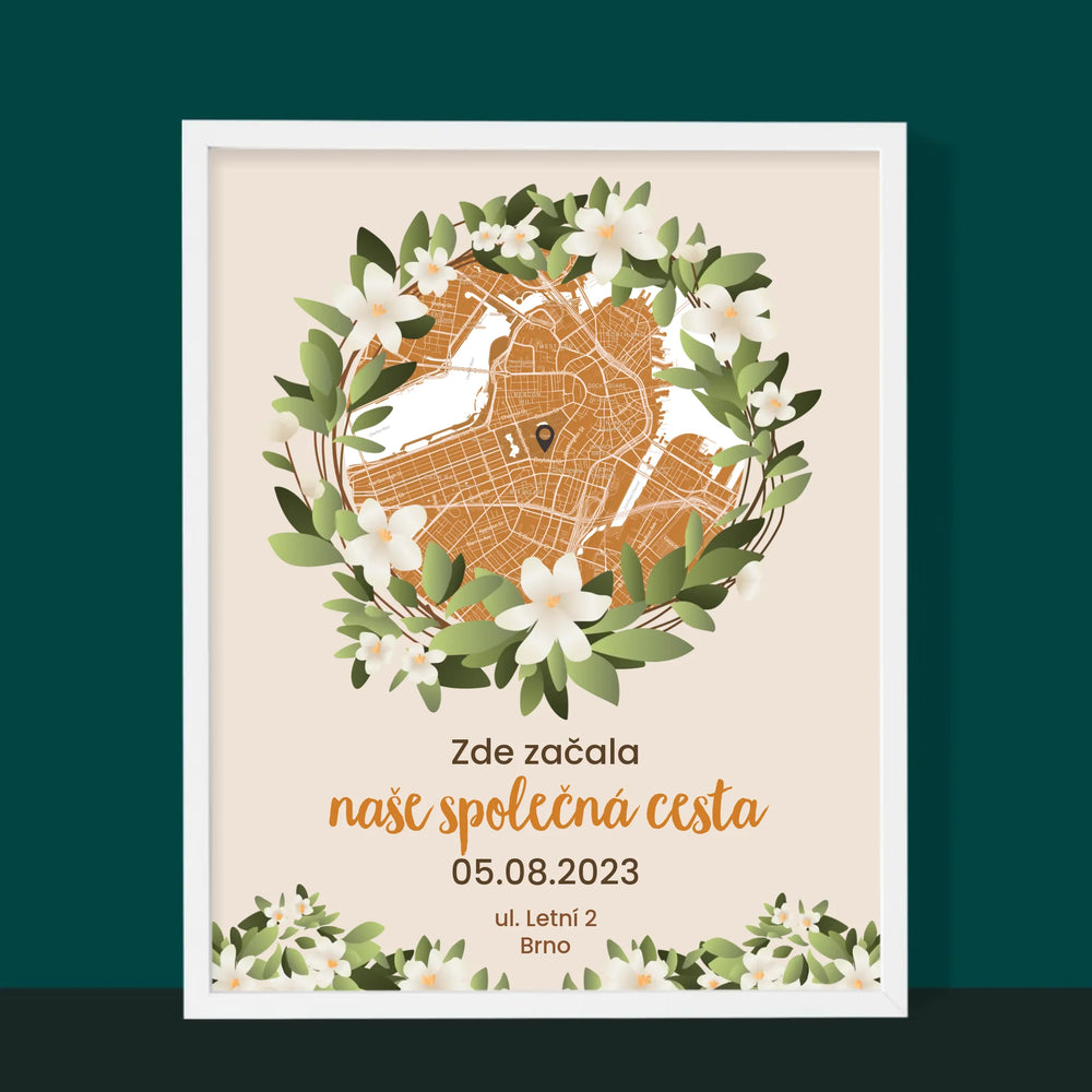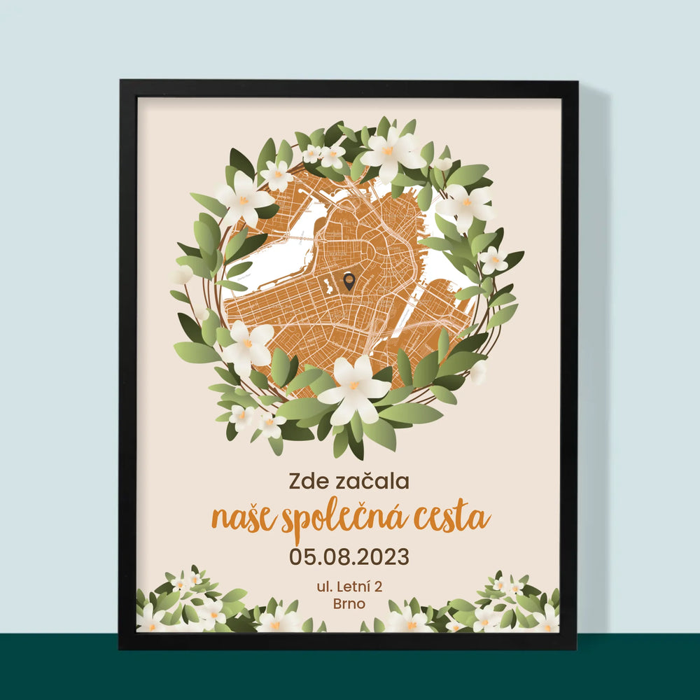 Mapa Města: Začátek Společné Cesty - Tisk v rámečku