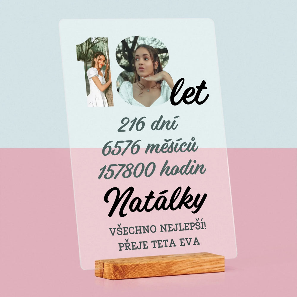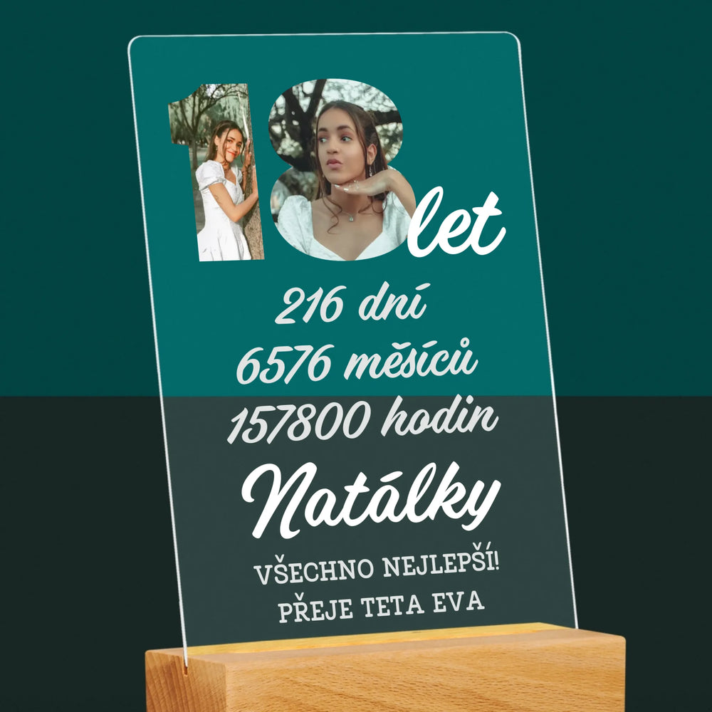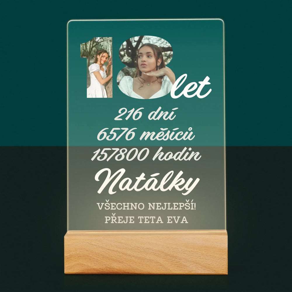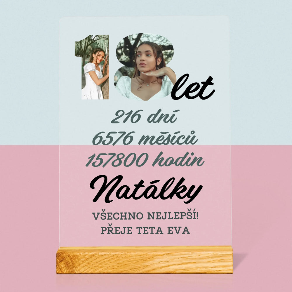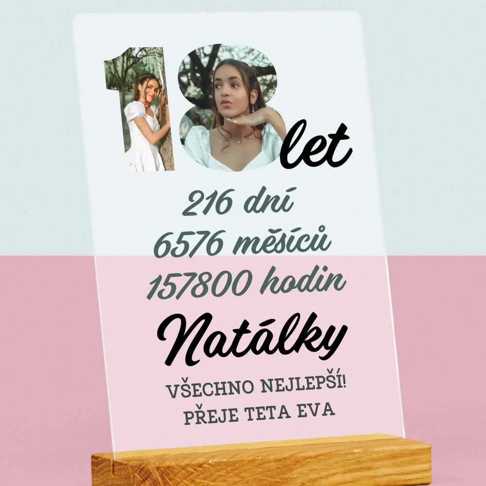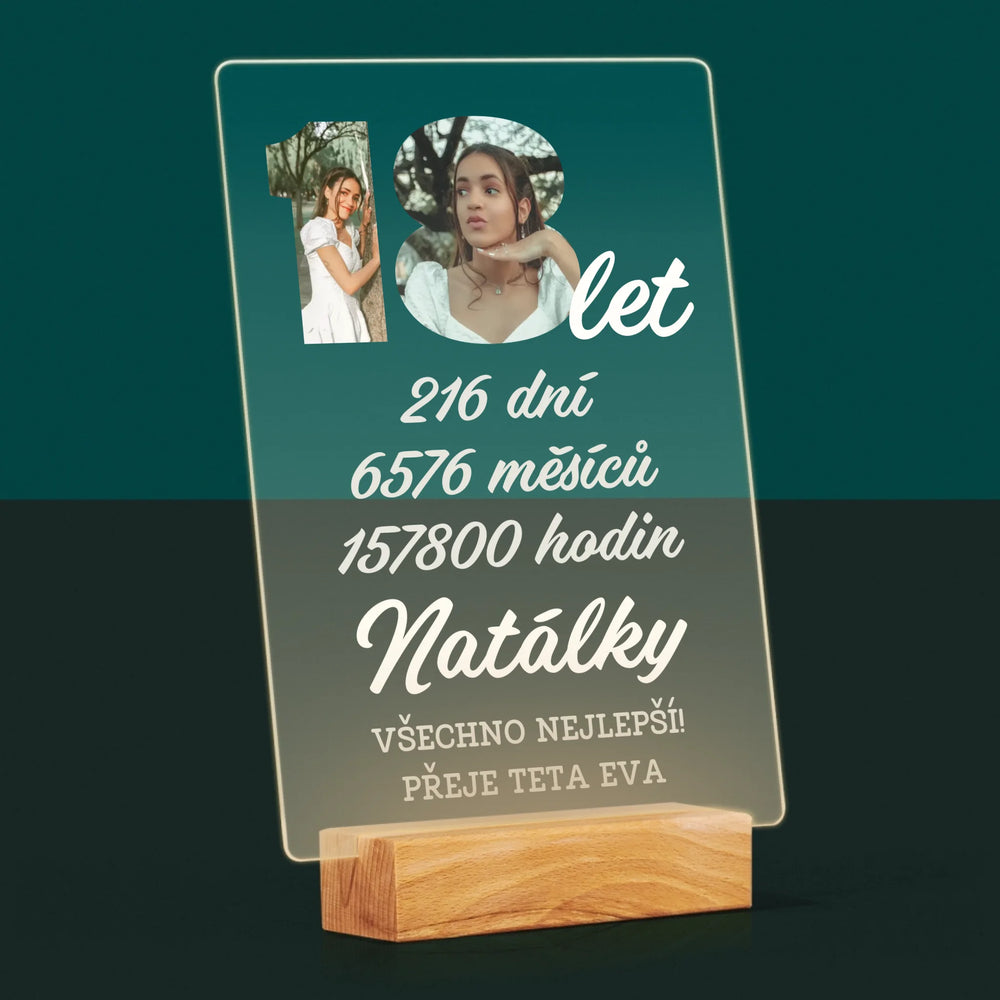 Slovo Z Fotek: 18 Let Odpočítávání - Tisk na akrylovém skle LED