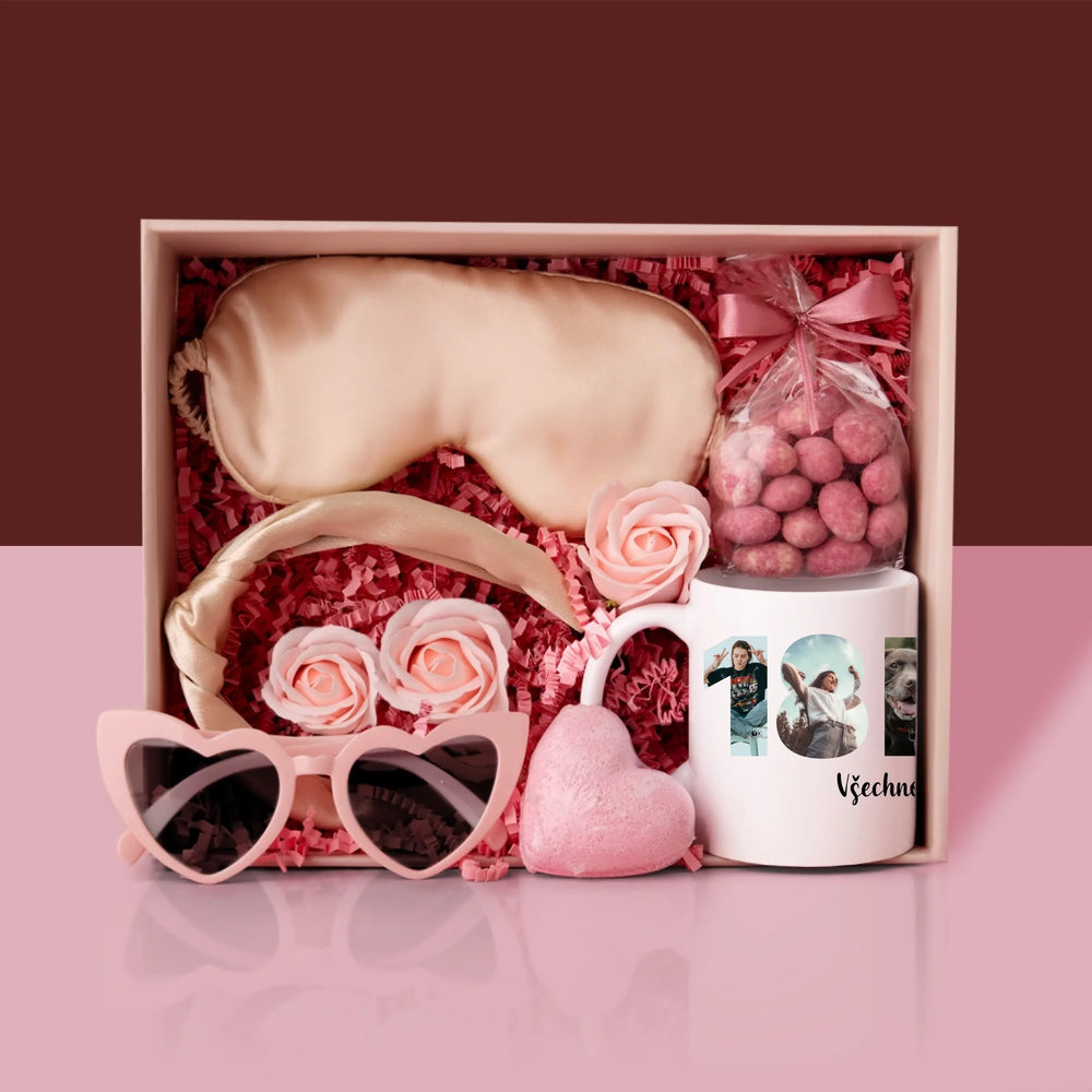 Slovo Z Fotek: 18 Let Z Tvých Fotek - Dárková sada s hrnkem a růžovým spa