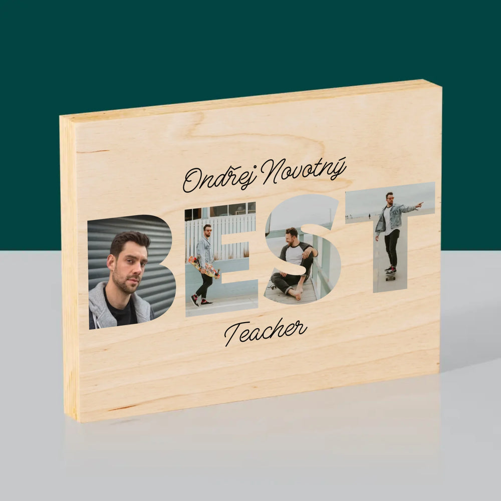 Slovo Z Fotek: Best Teacher - Tisk na dřevo - horizontální